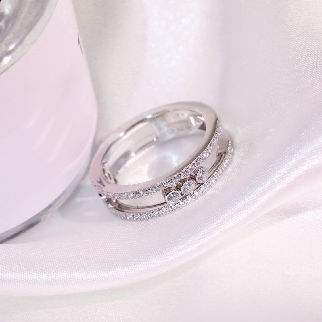 BABY MOVE PAVED SILVER DIAMOND RING