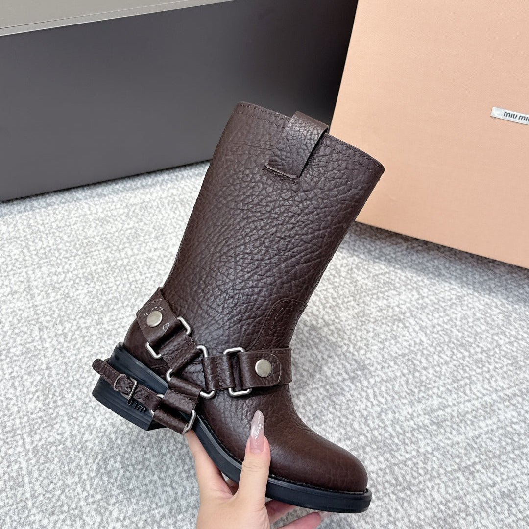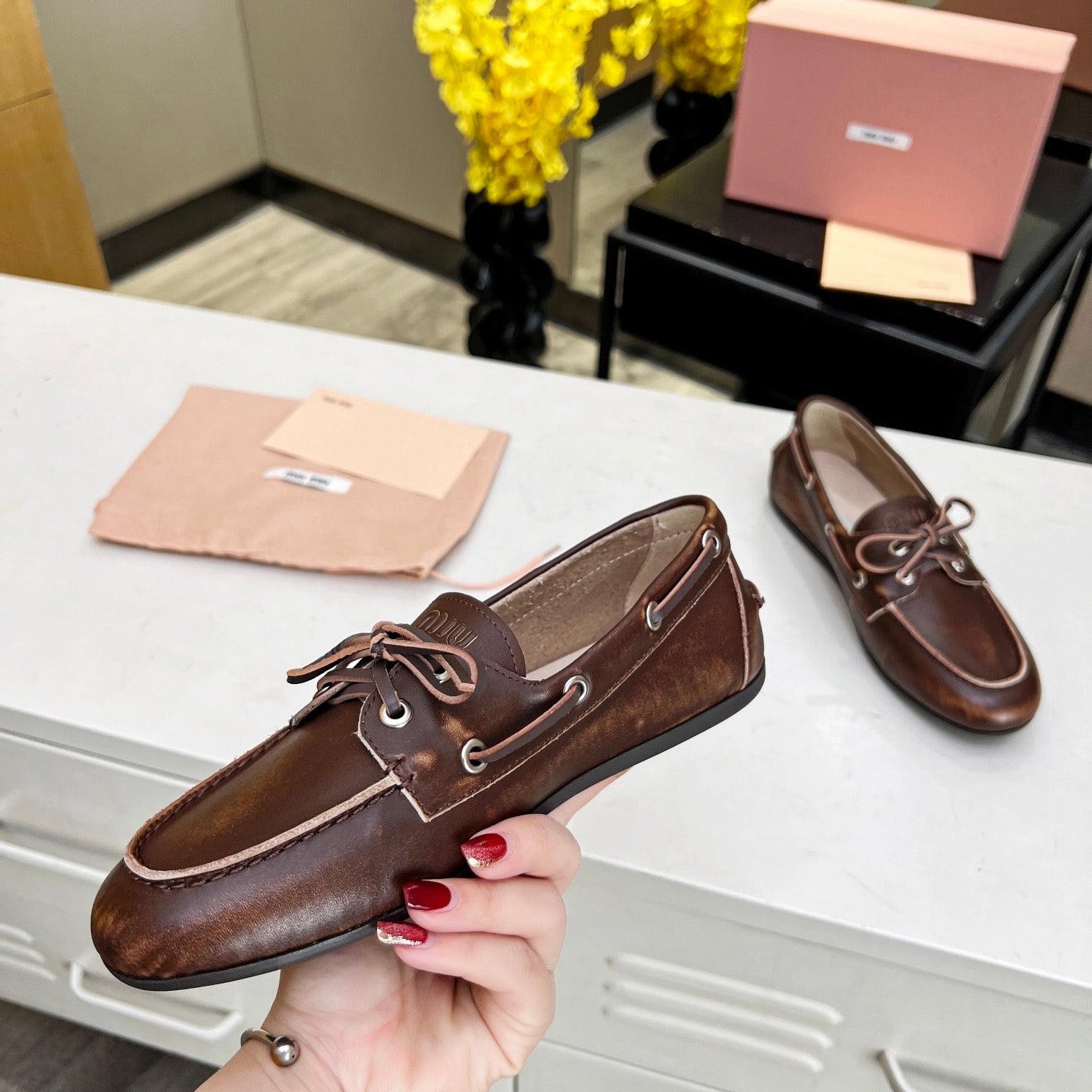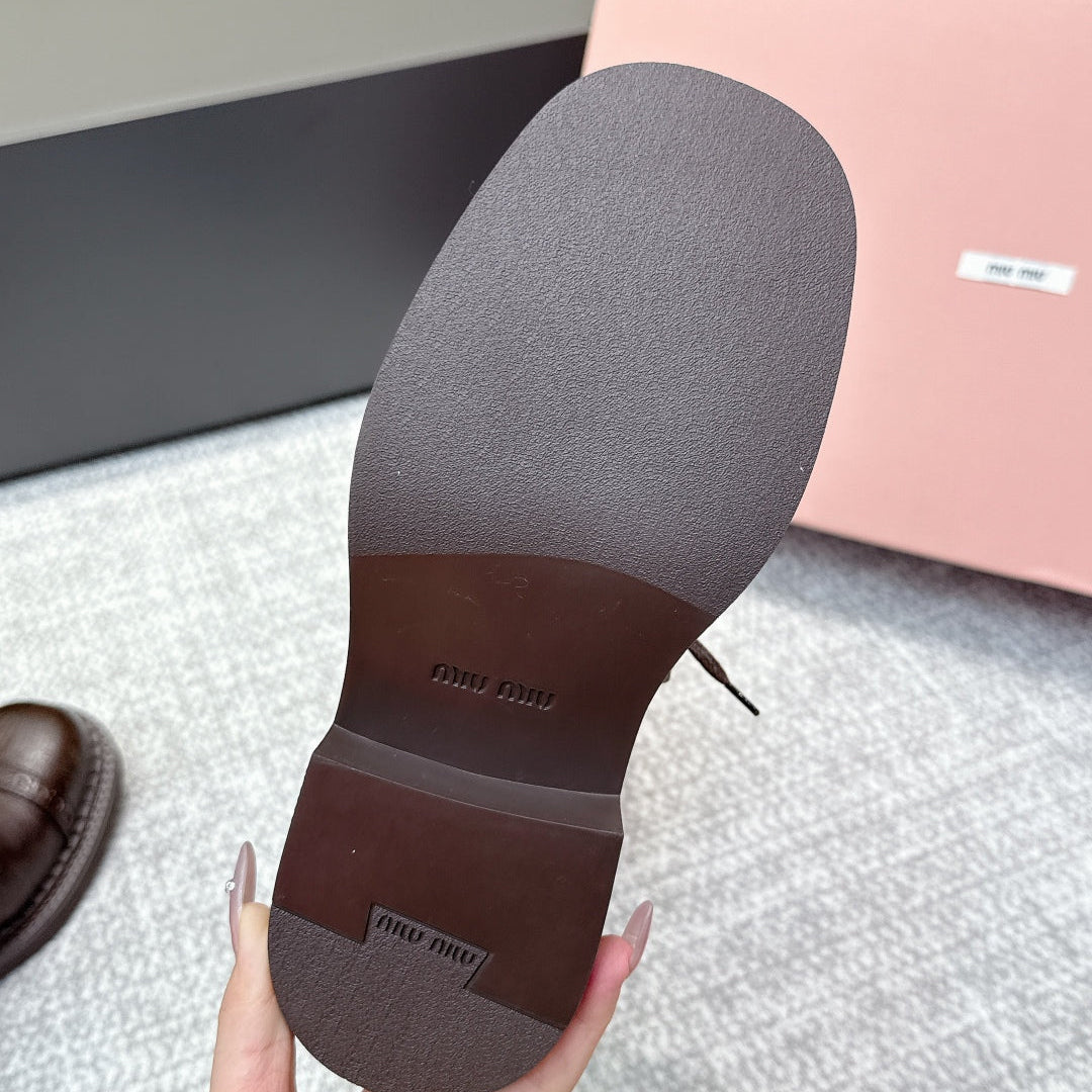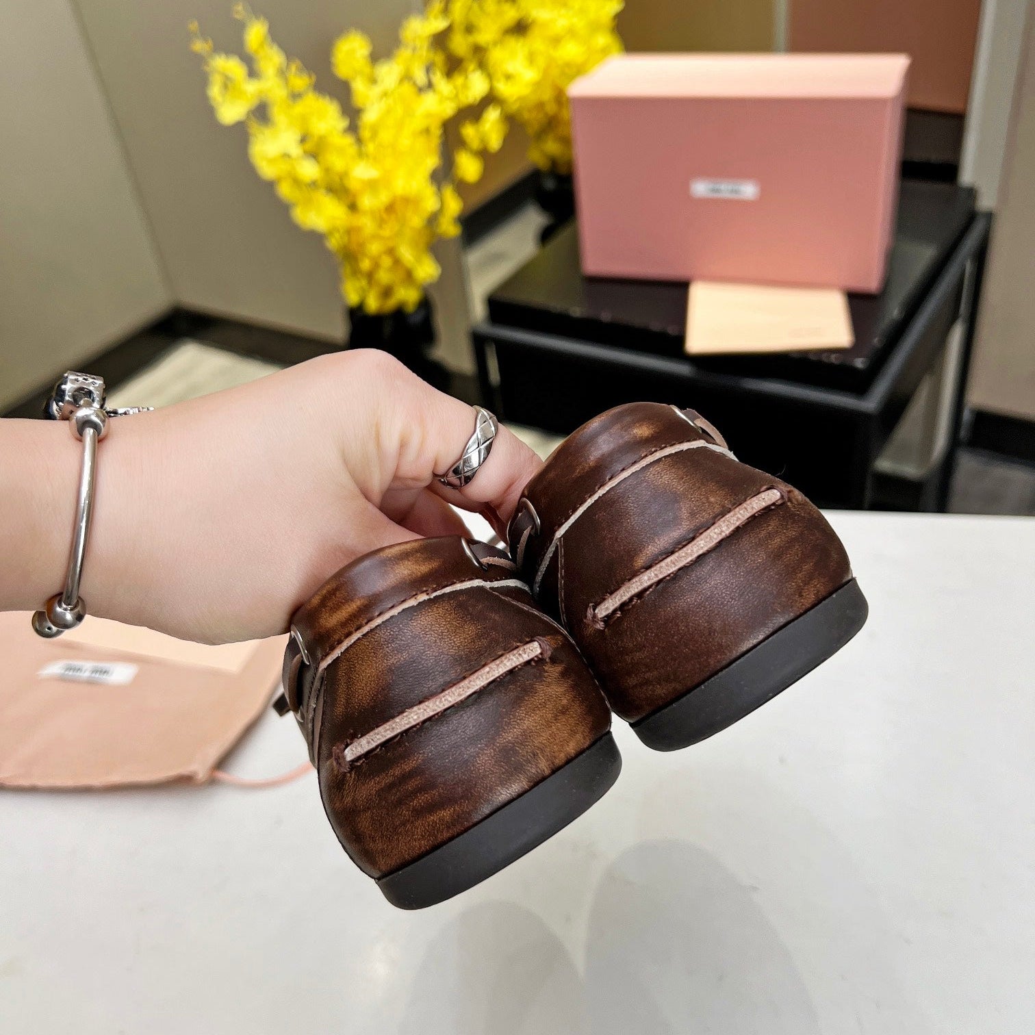 Miu 25C Ruches nappa Loafers Copper Brown Suede 235807