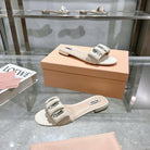 Miu 25C Slippers Beige Cream Leather 235283