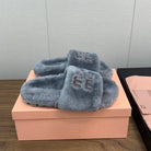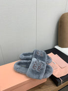 Miu Slippers Gray With Brown Lettering Pure Wool