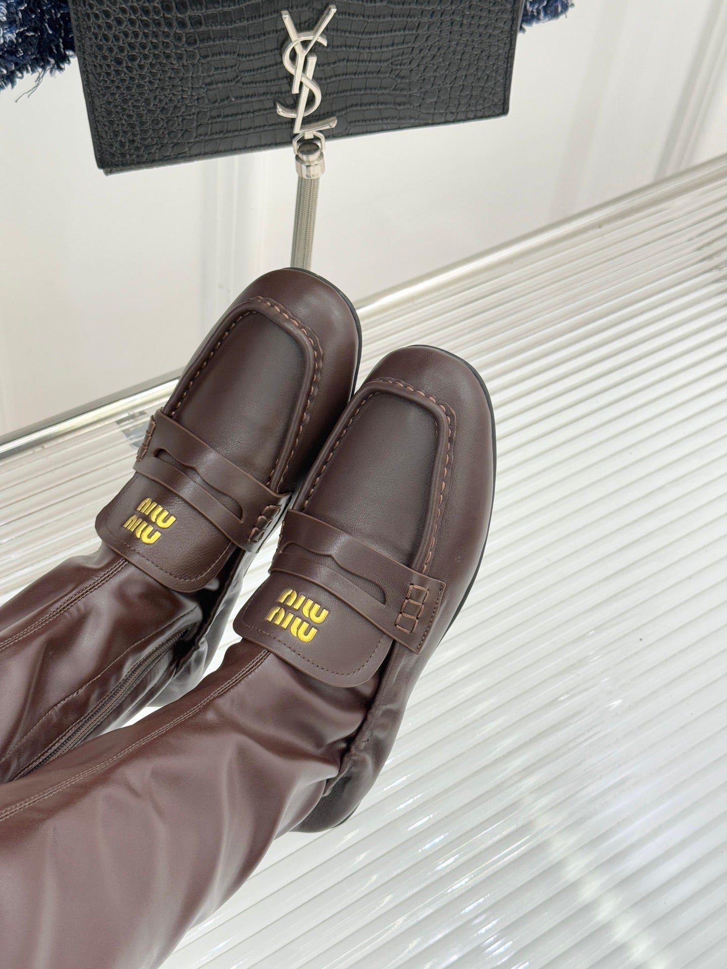MiuMiu 25 loafer stretch boots brown calfskin 517336