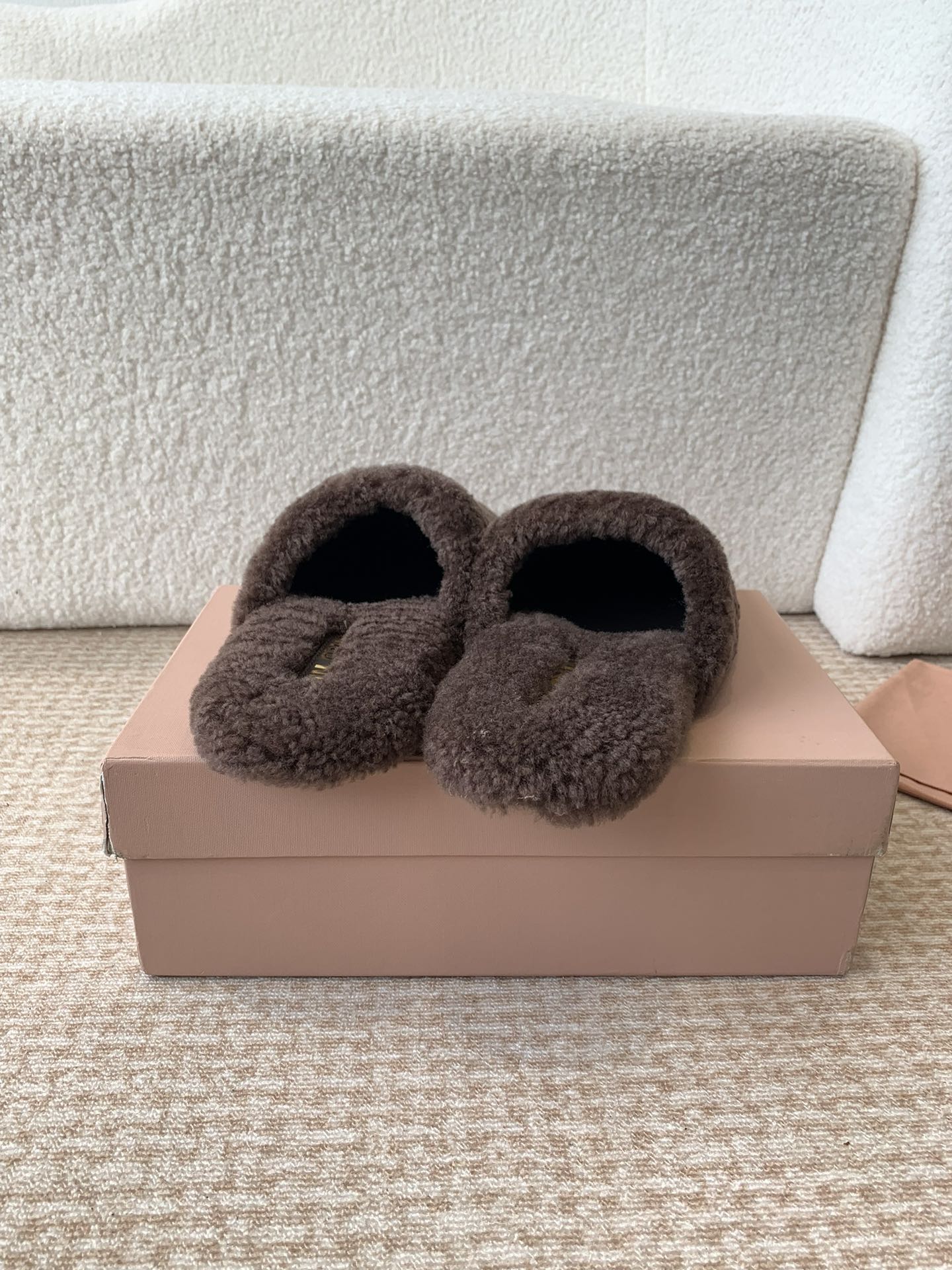 Miu Slippers Light Brown Soft Imported Wool And Fur