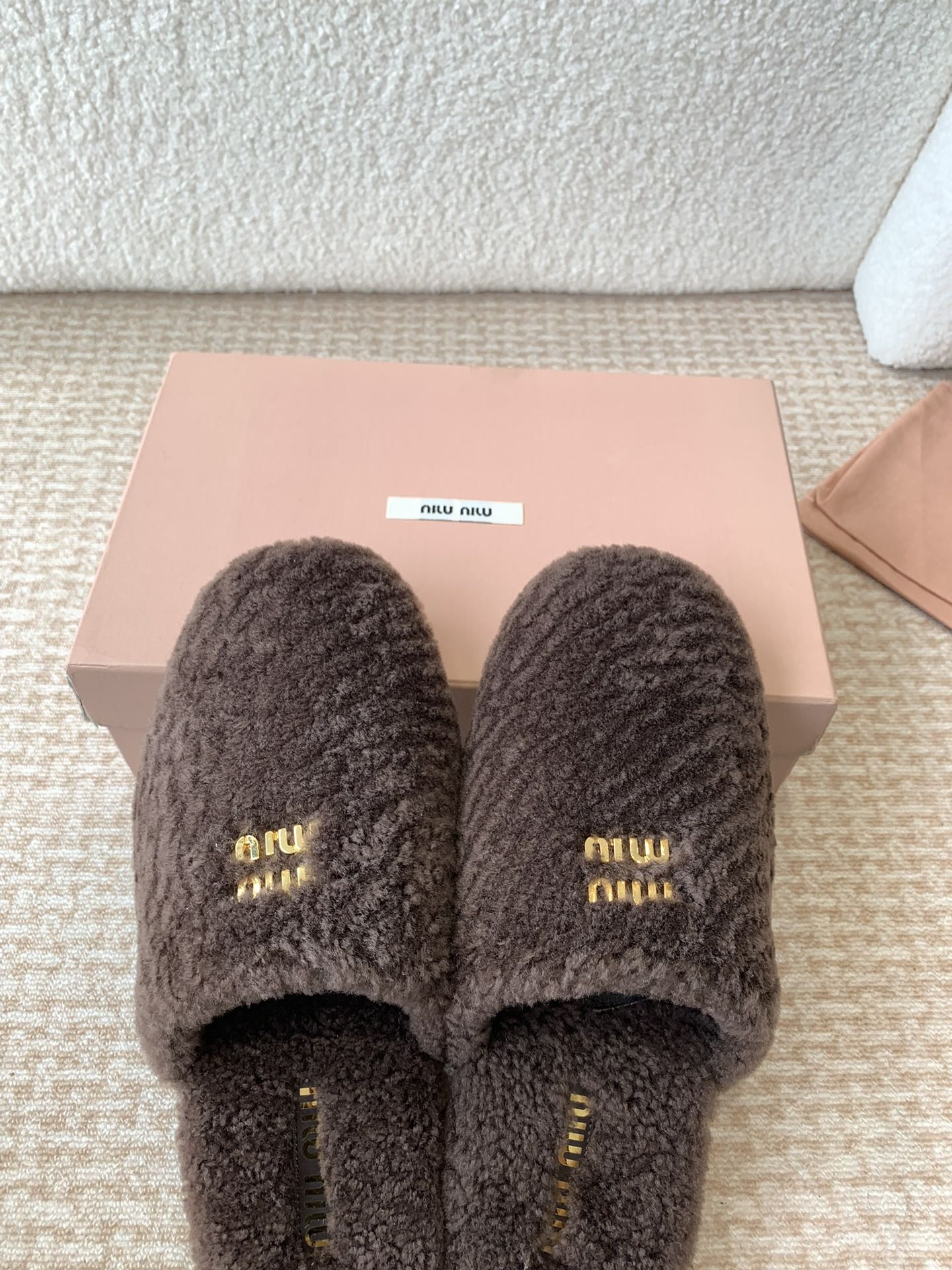 Miu Slippers Peanut Brown Imported Sheepskin