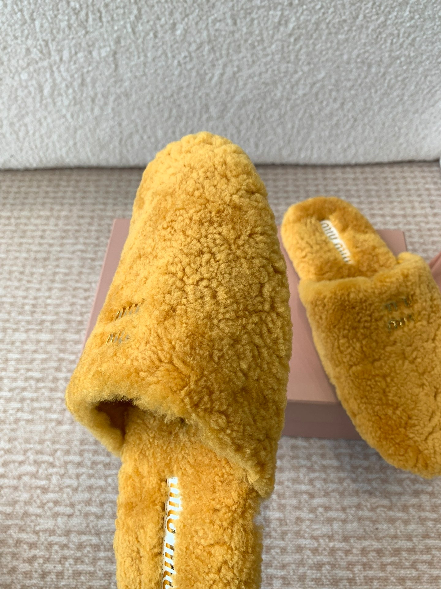 Miu Slippers Dark Yellow Imported Sheepskin