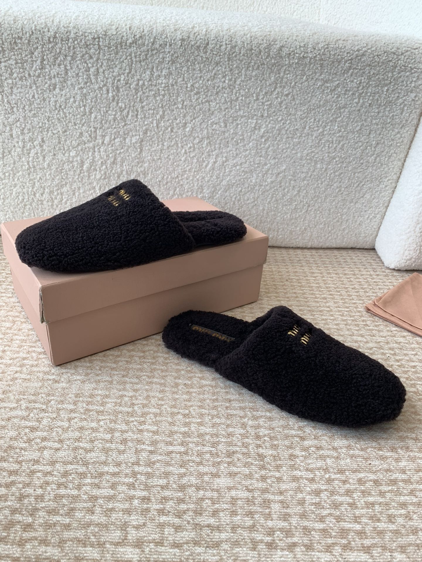 Miu Slippers Black Soft Imported Wool And Fur