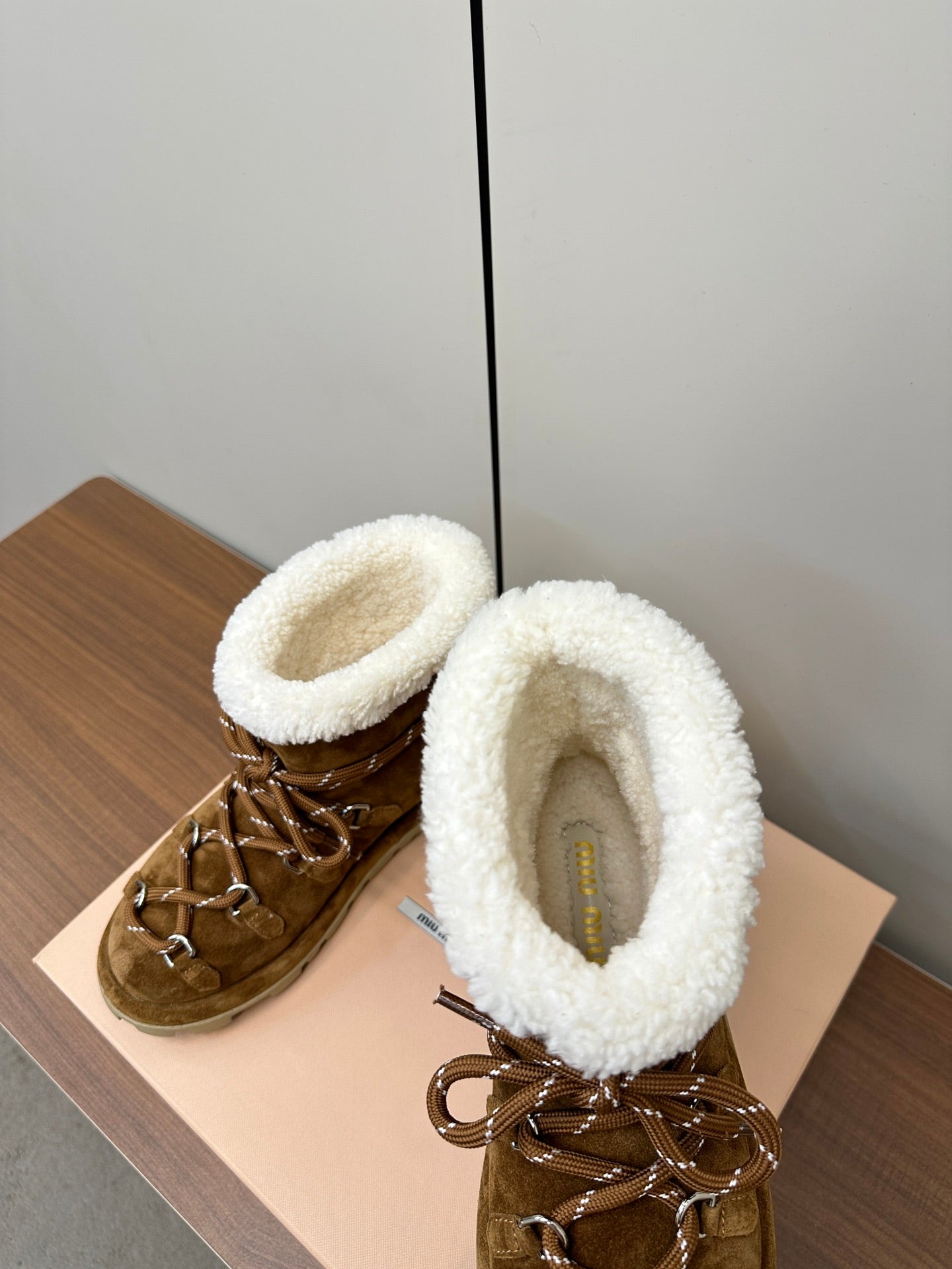 Miu Ankle Boots Brown Yellow Fleece Lining Cow Suede