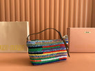 CROCHET TOTE BAG 25 IN MULTICOLORED WOVEN RAFFIA