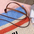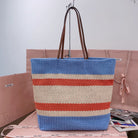 TOTE BAG 40 IN STRIPED PATTERN OF LIGHT BLUE ORANGE AND CREAM WHITE WOVEN RAFFIA