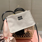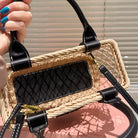 WOVEN HOLLOW BAG 23 IN BEIGE RATTAN AND BLACK CALFSKIN TRIM
