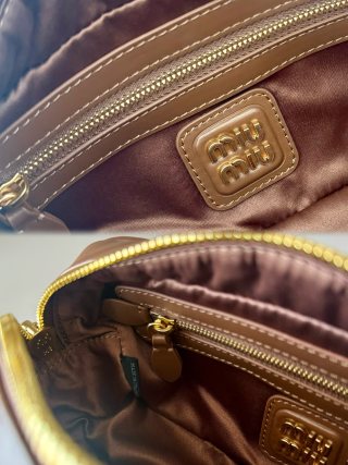 Miumiu Arcadie Matelassã Bag 22 In Mischka Brown Lambskin