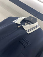 Miu Miu 25 Crop Top Wool Set Navy Blue 283087