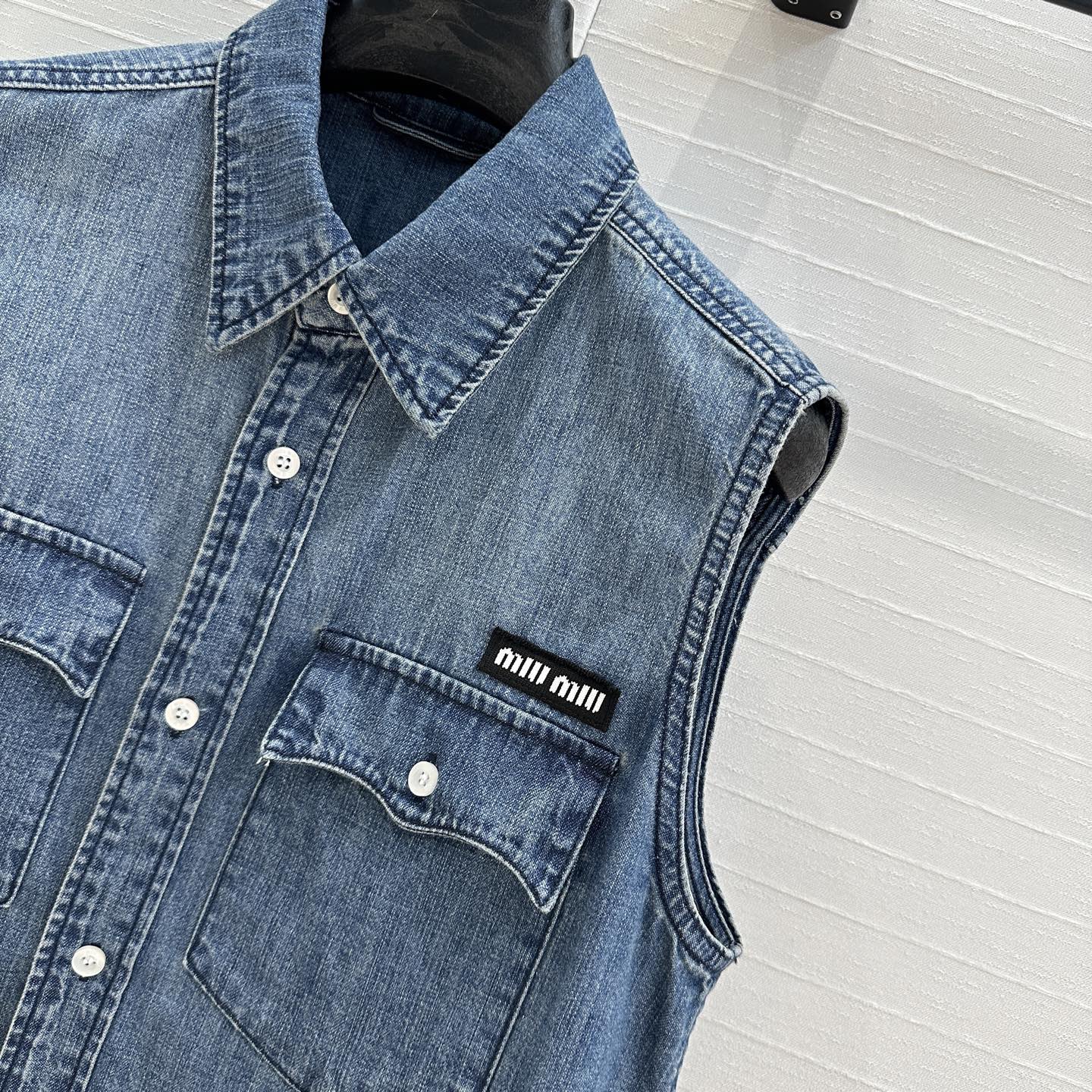 Miu Miu 25 Denim Shirt Vest Blue Cotton
