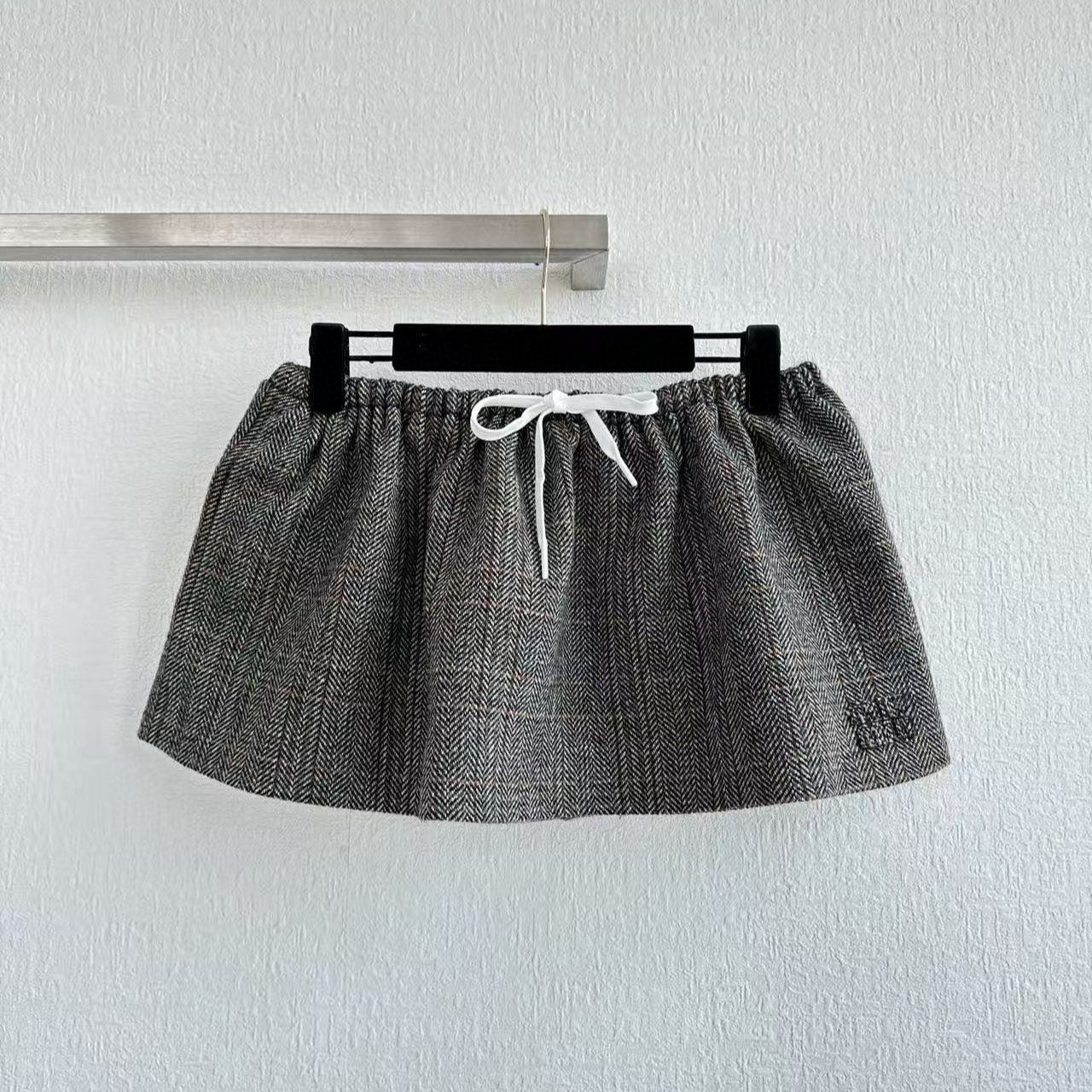 Miu Miu 25 Patterned Rope Skirt Gray Wool Viscose