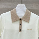 Miu Miu 25 Polo Collar Short-sleeve Knitted Top Beige Wool