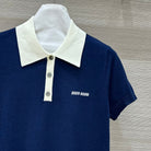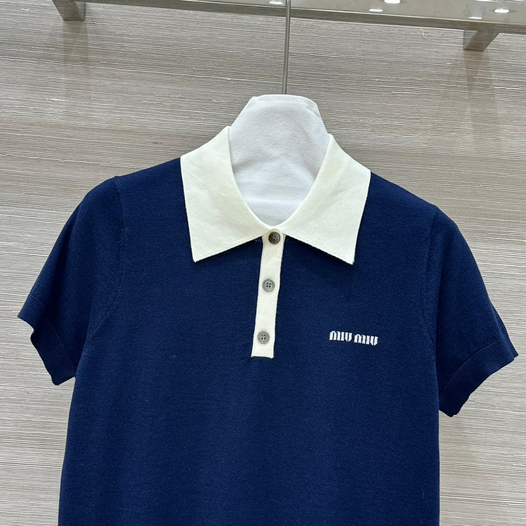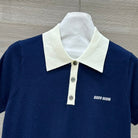 Miu Miu 25 Polo Collar Short-sleeve Knitted Top Blue Wool