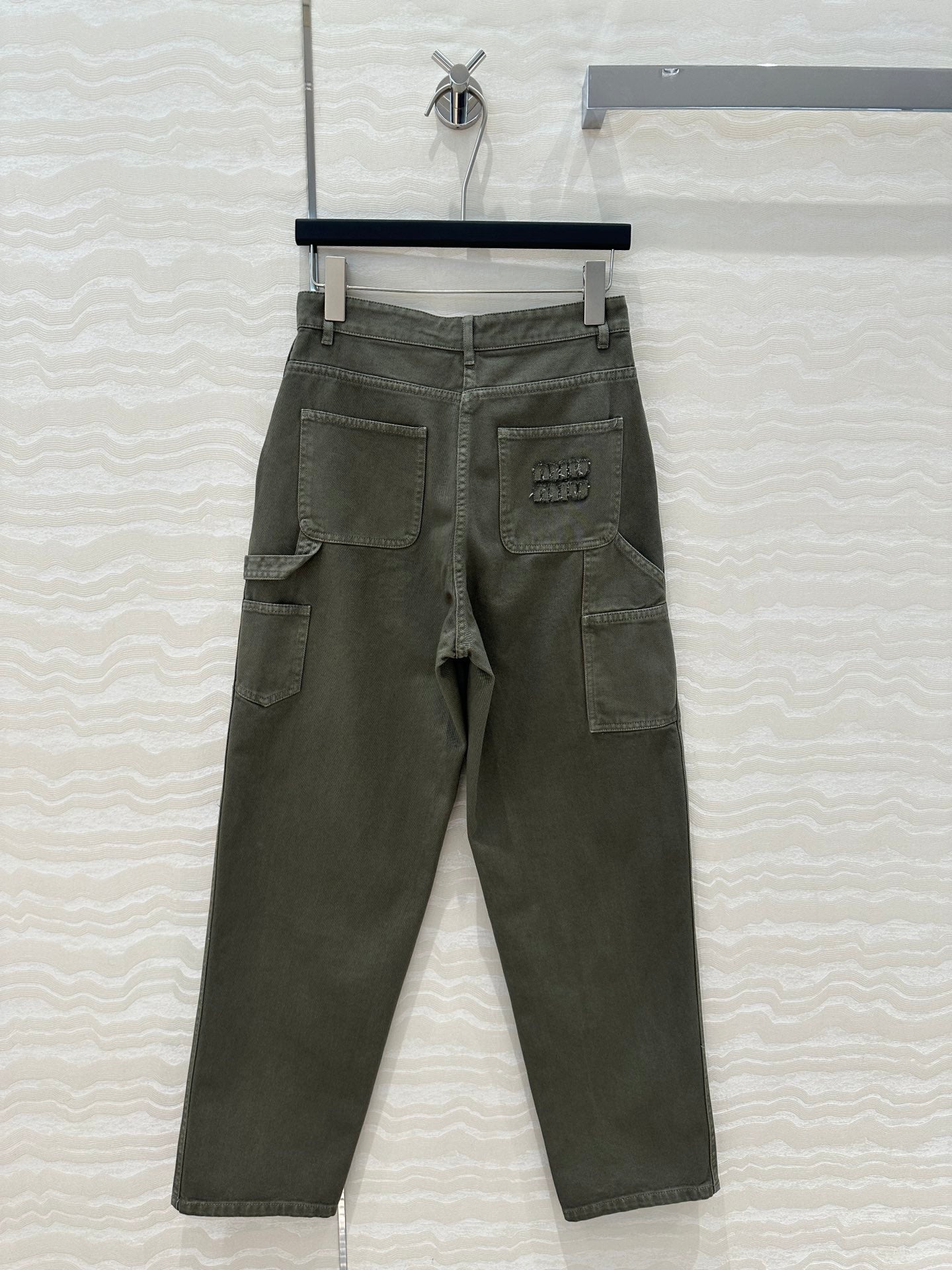 Miu Miu 25 Straight Pants Khaki Green Cotton