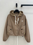 Miu Miu Pattern Hooded Jacket Beige Brown Polyester