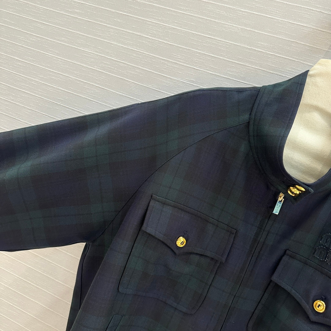 Miu Miu Plaid Drop Shoulder Jacket Green Blue Wool