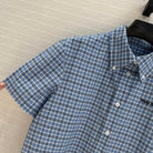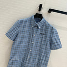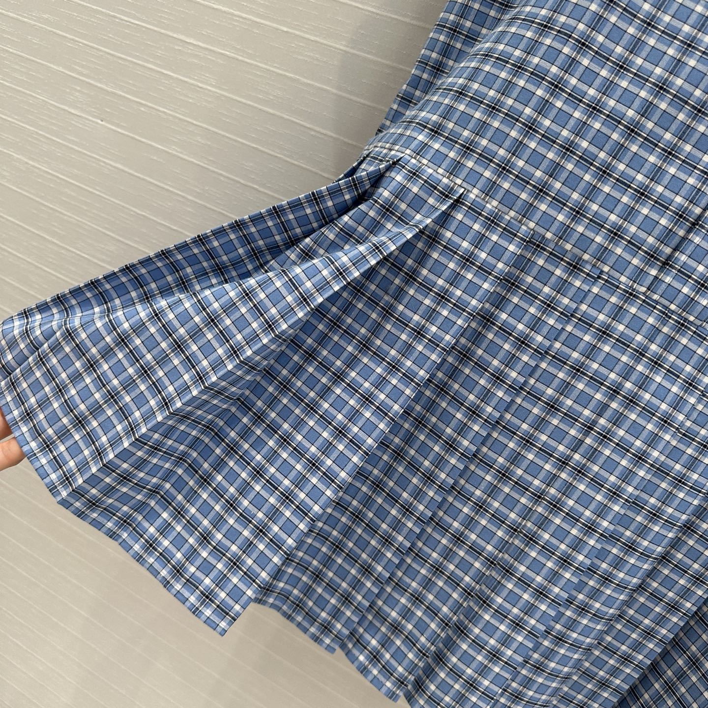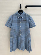 Miu Miu Plaid Pleated Shirt Dress Blue Cotton