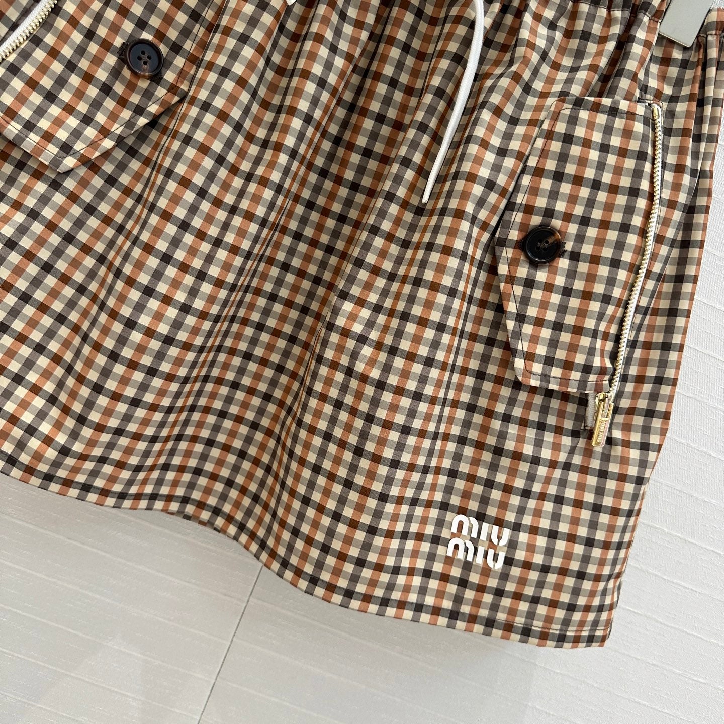 Miu Miu Puffy Mini Skirt Beige Brown Polyester