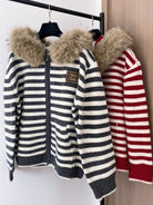 Miumiu 2025 Fur Hoodie Stripe Jacket Wool