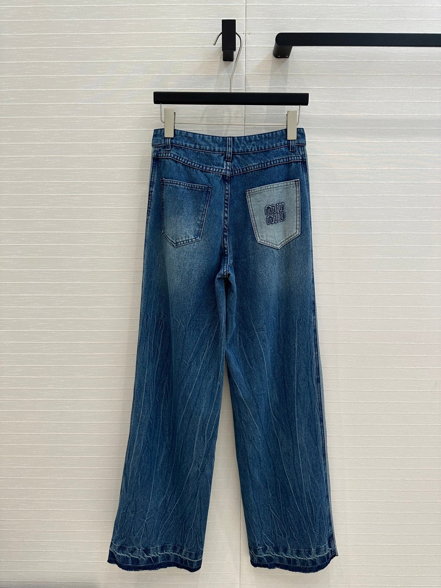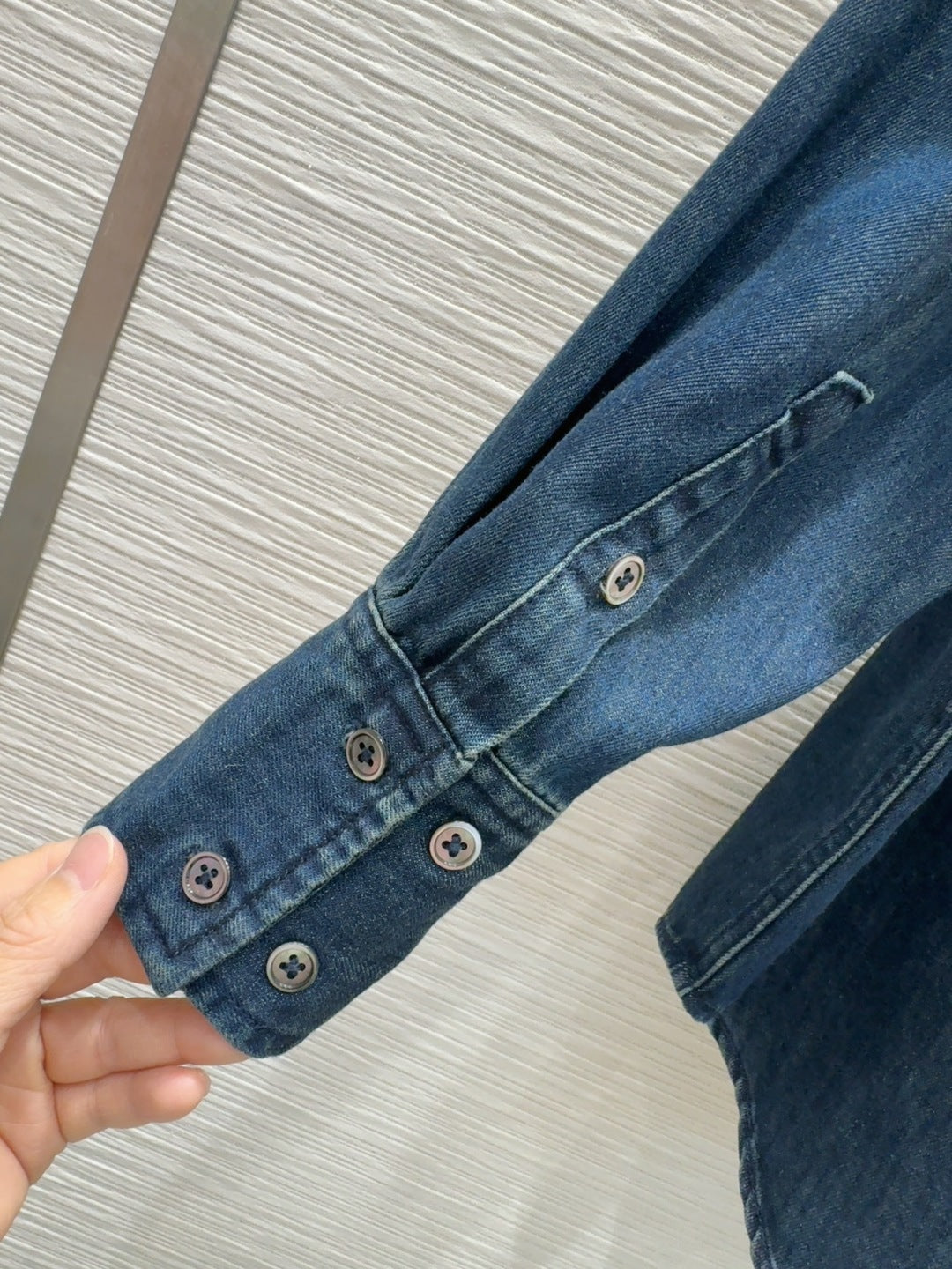 Miu Miu Beaded Letters Decorated Denim Suit Dark Blue Cotton