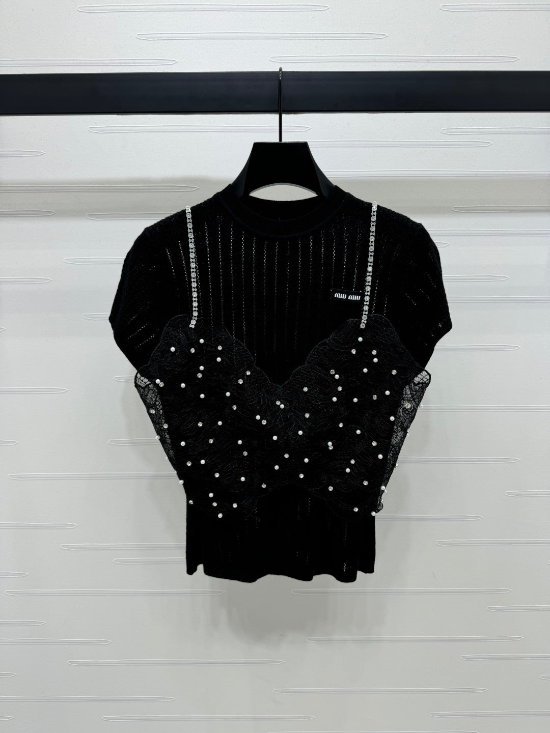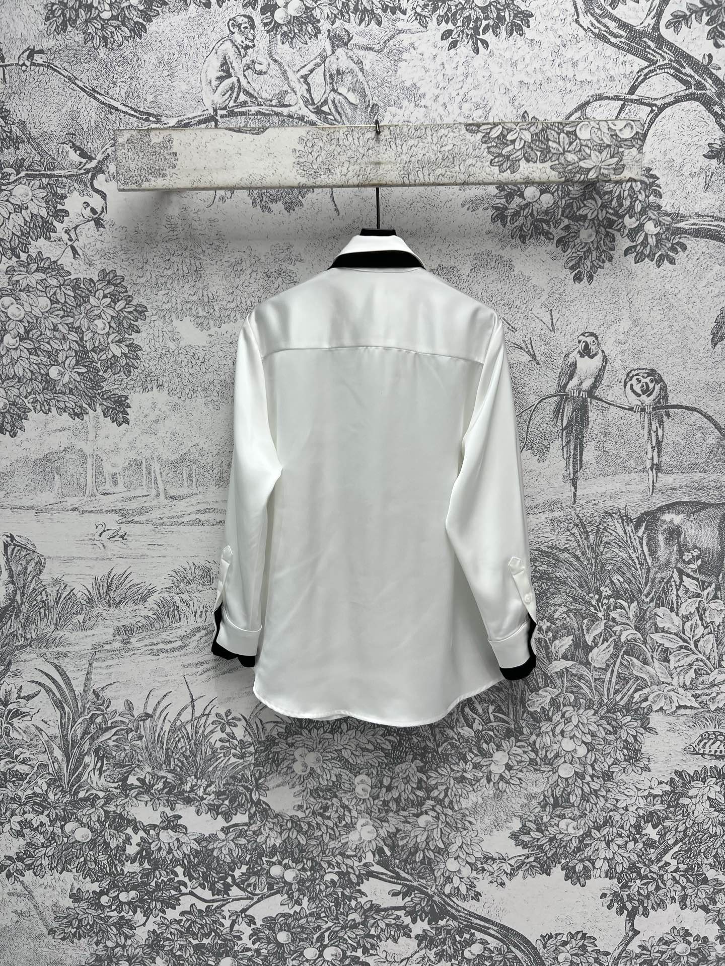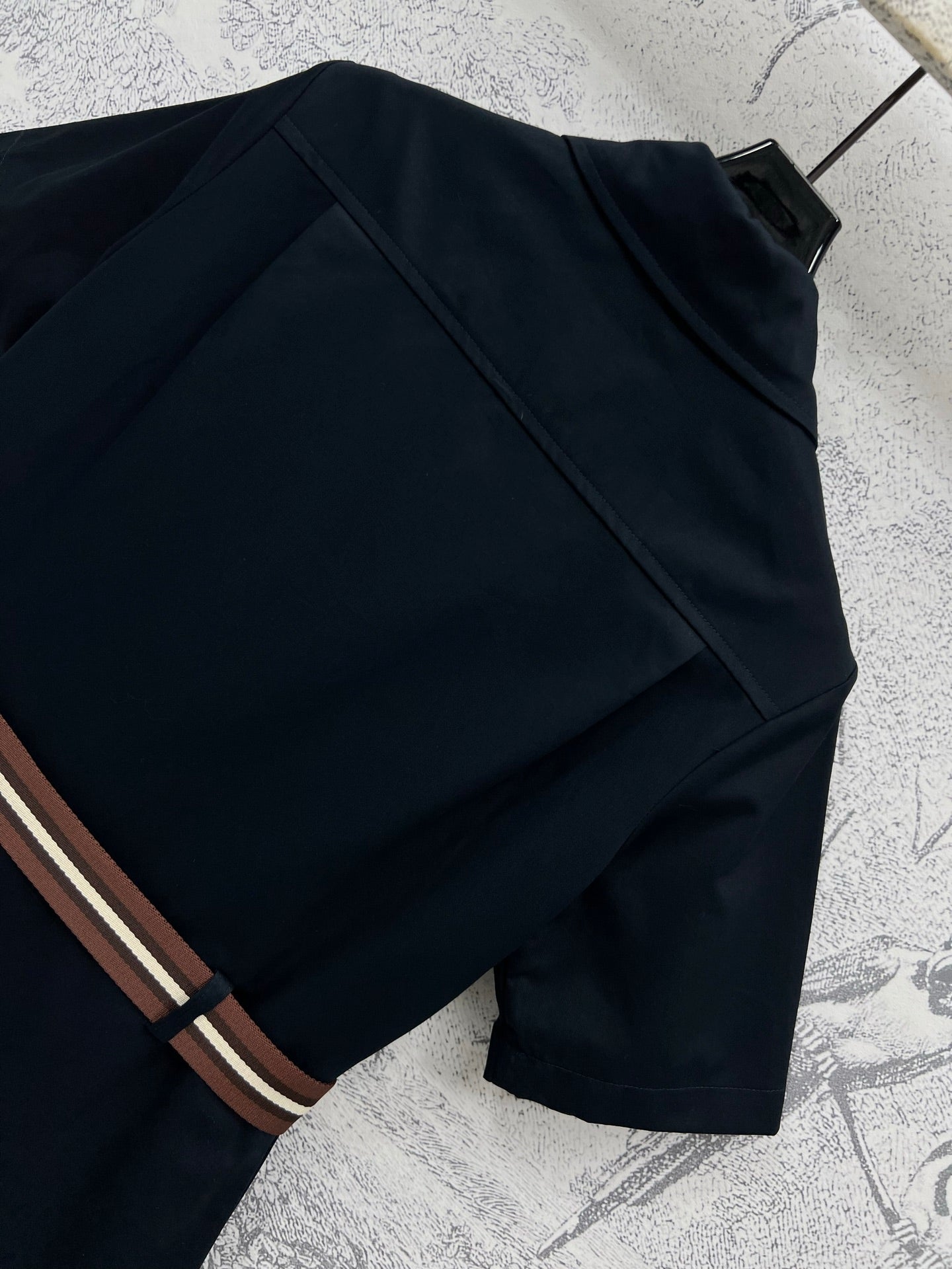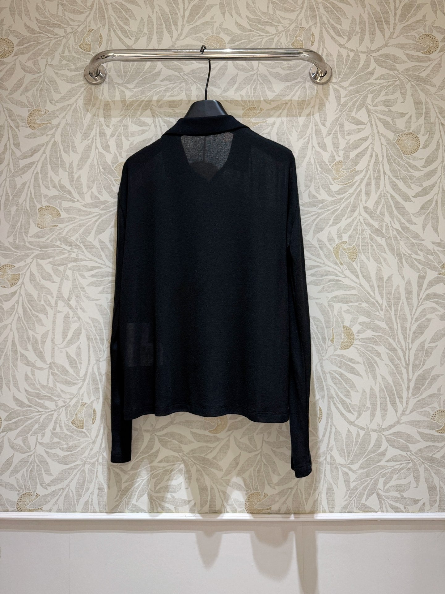 Miu Miu 25 Polo Collar Short-sleeved Top Black White Tencel