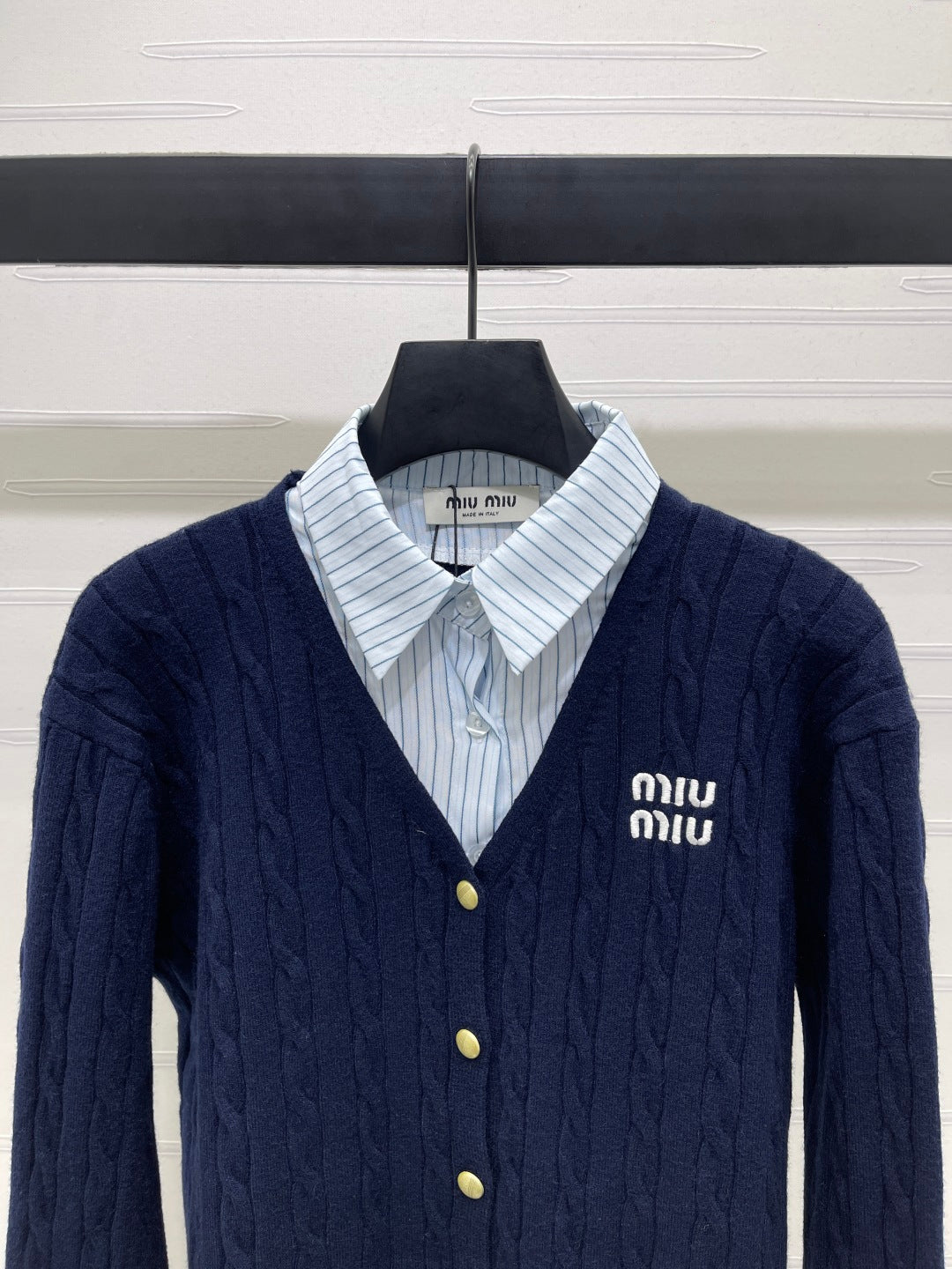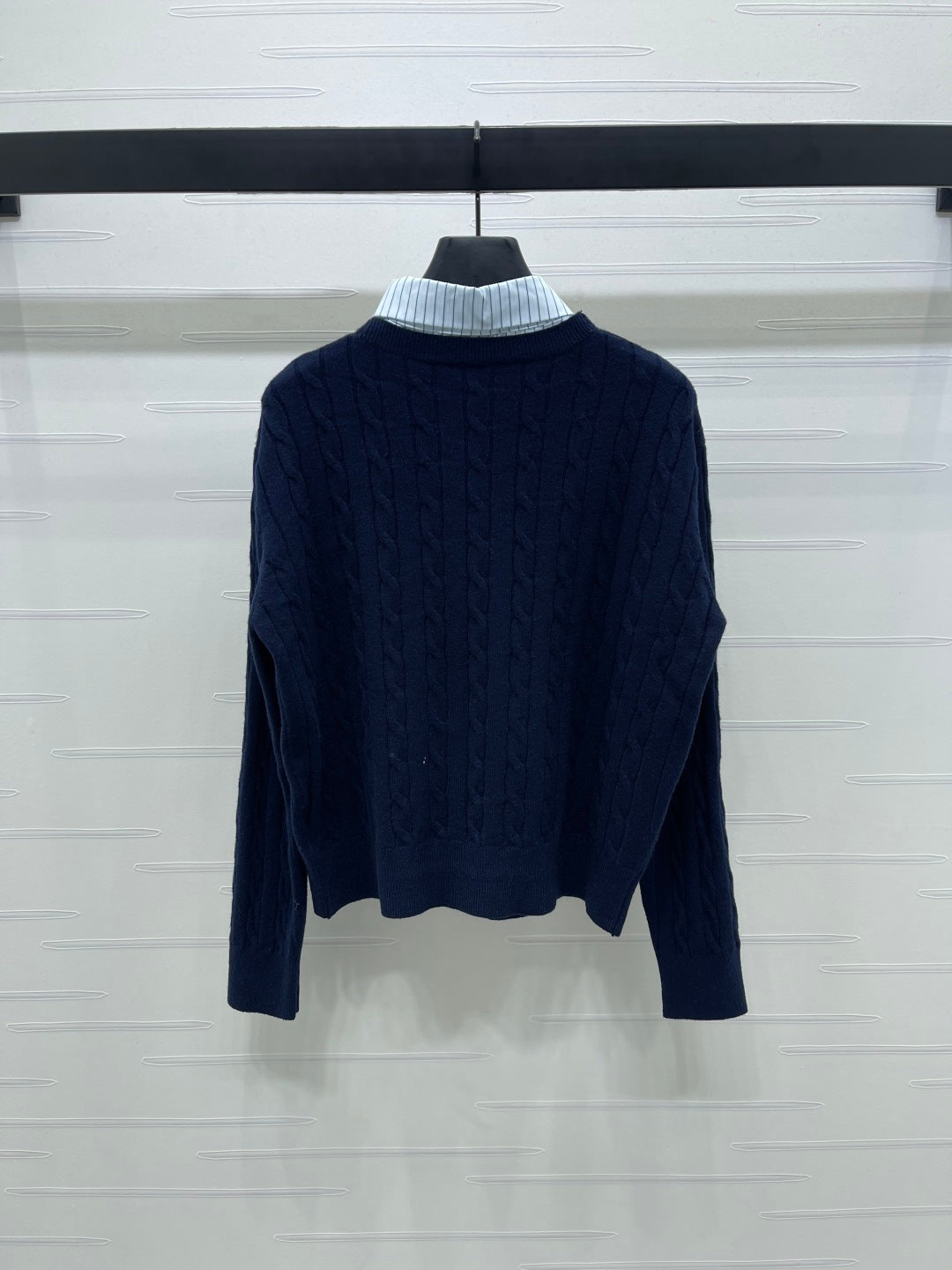 Miu Miu 25 Striped Sweater Navy Blue Cashmere