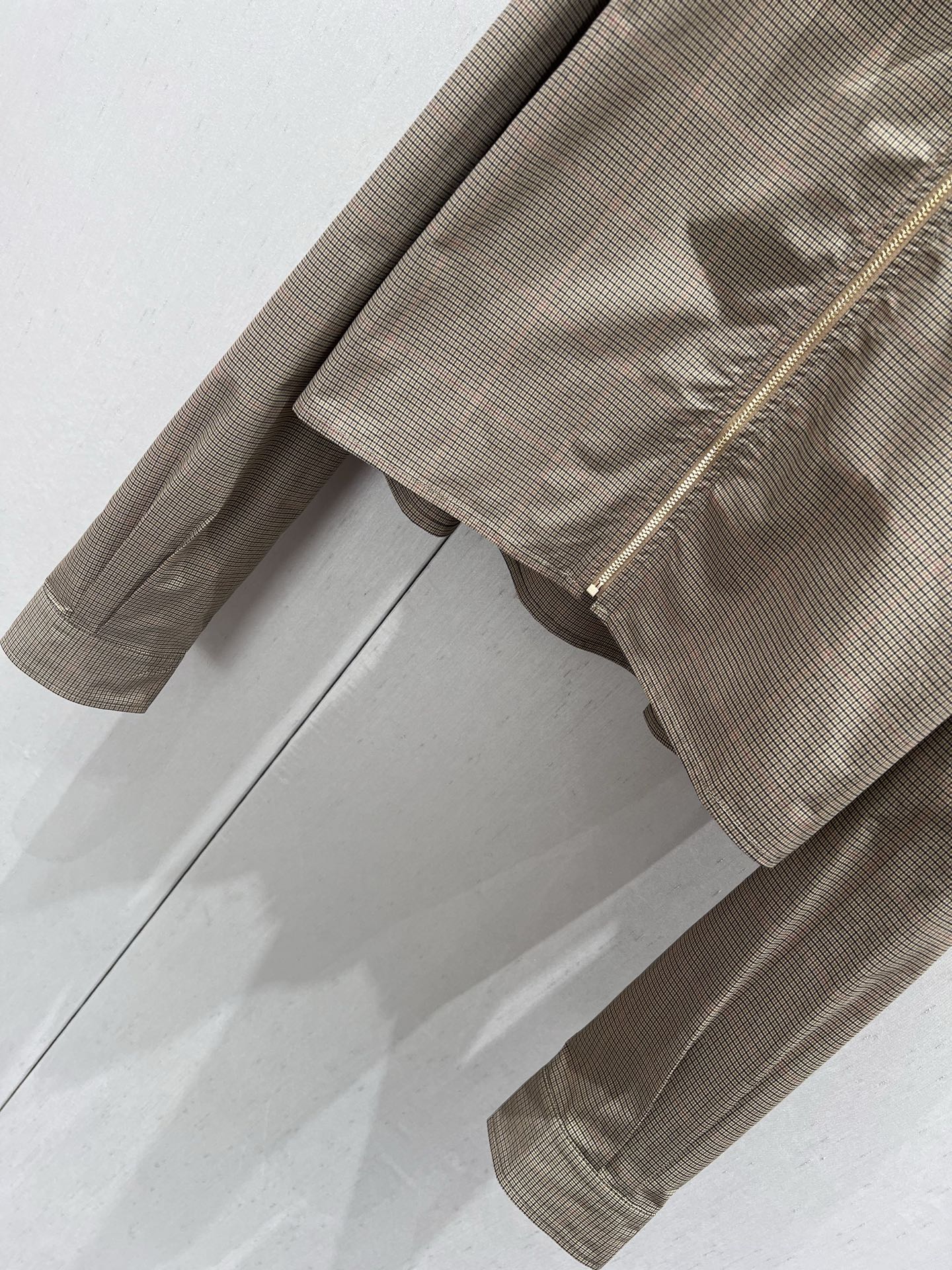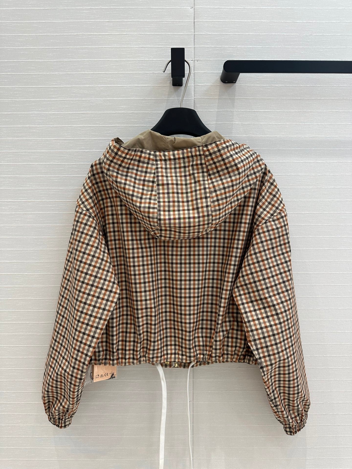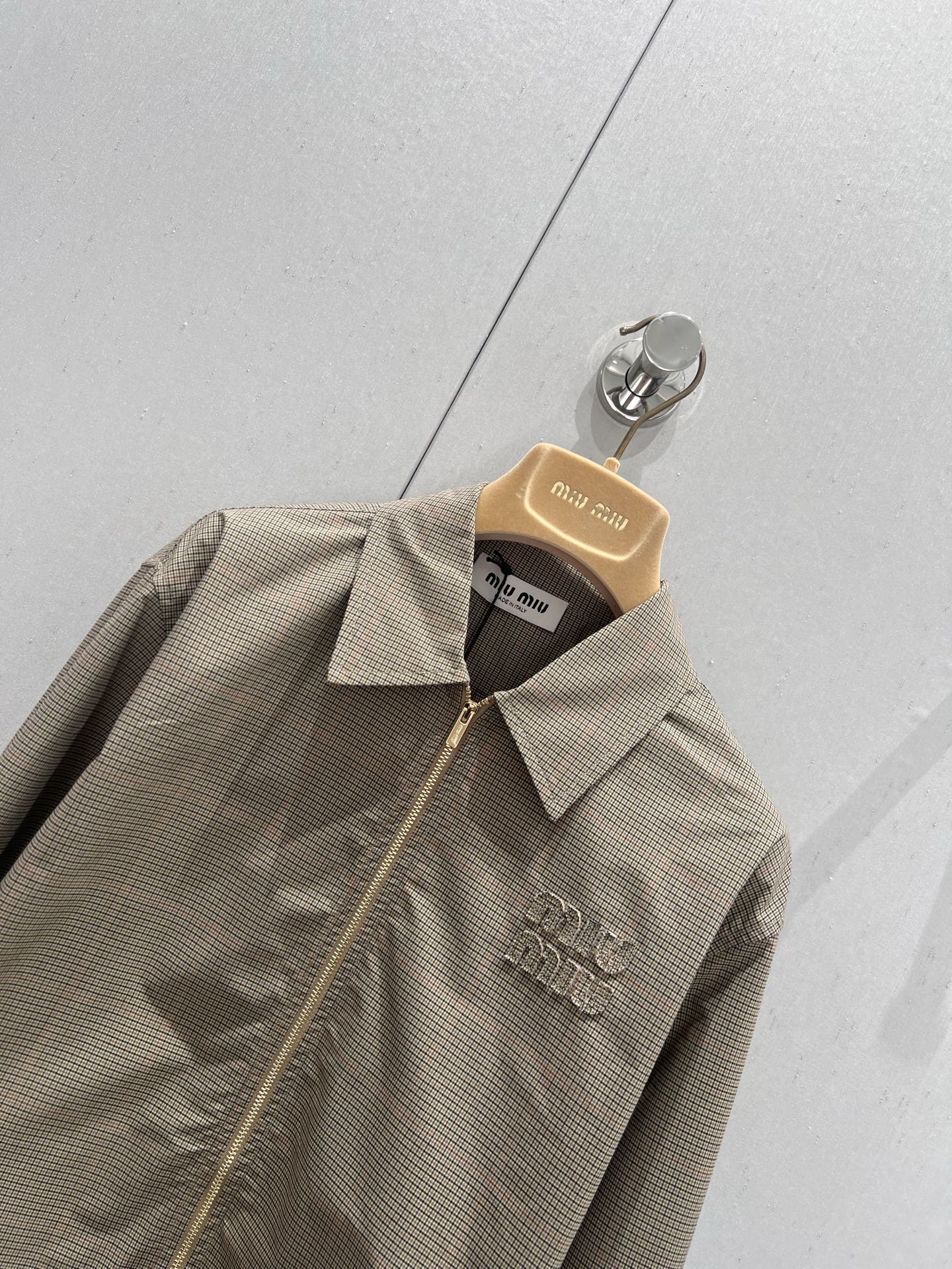 Miu Miu 25 Plaid Stand-up Collar Jacket Katun Pelapis