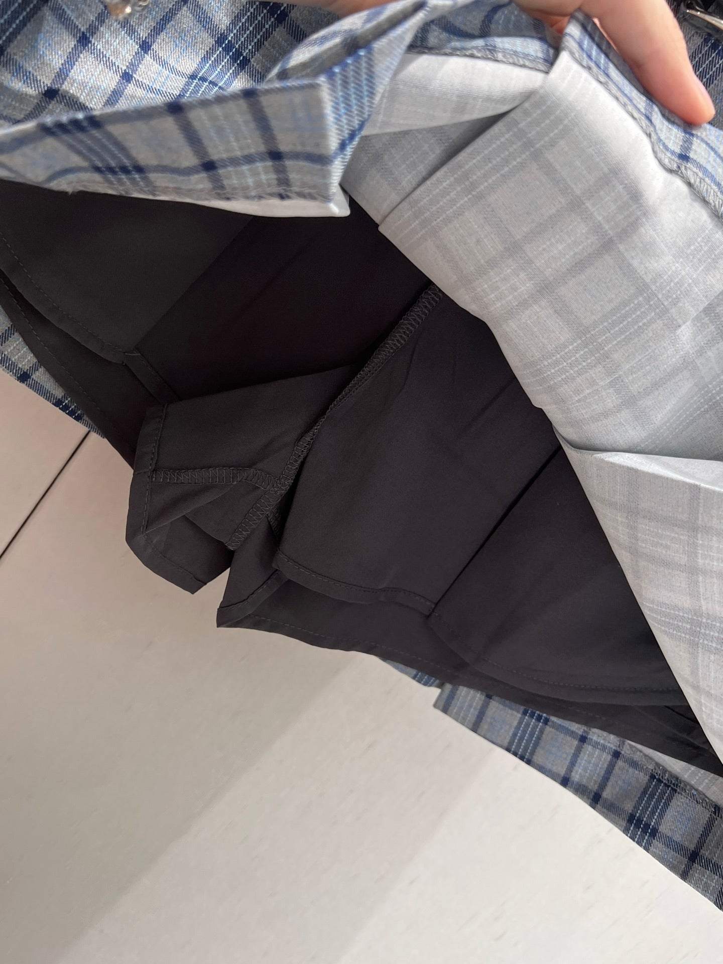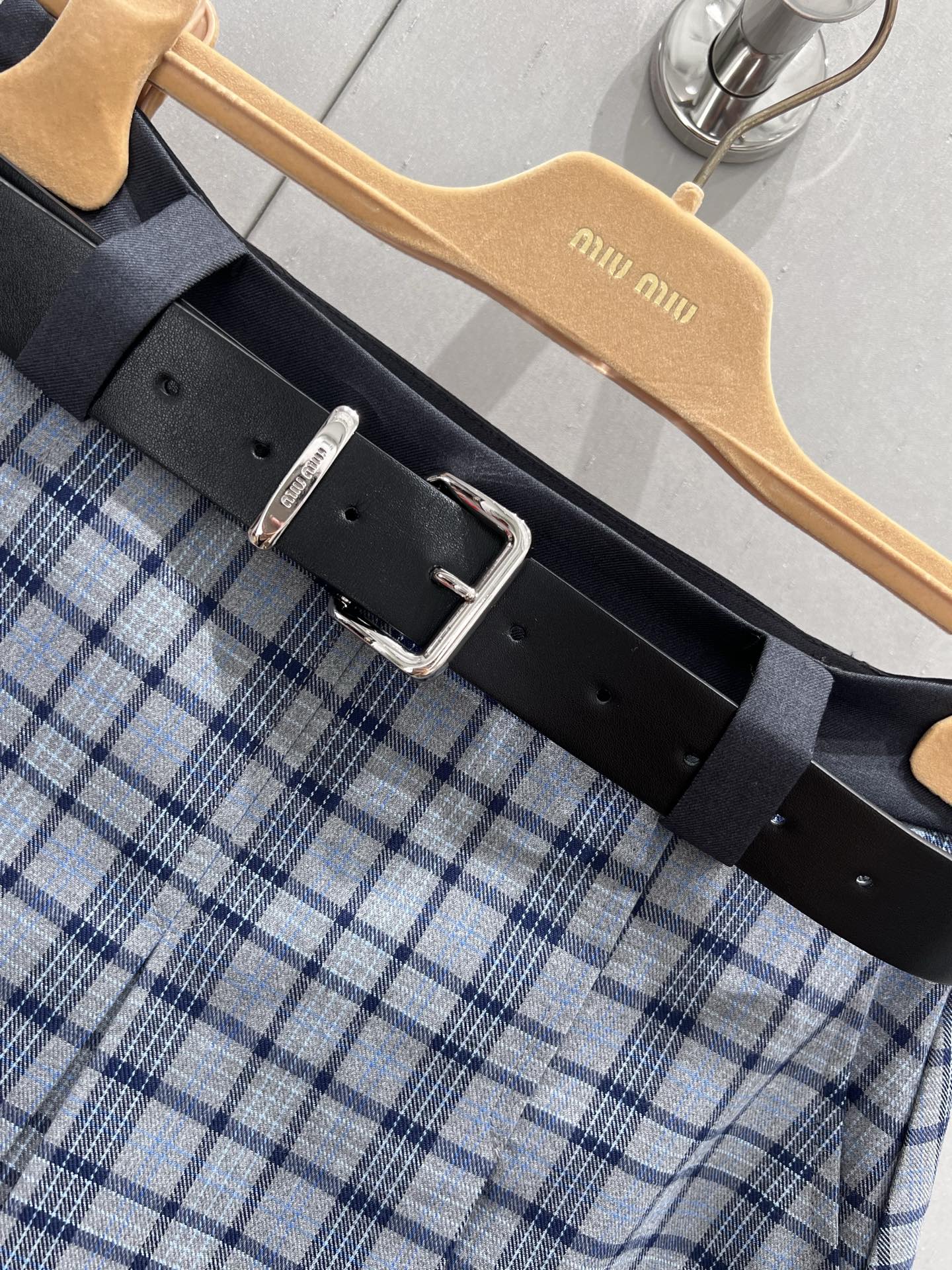 Miu Miu 25 Plaid Pleated Skirt Blue Polyester 211200