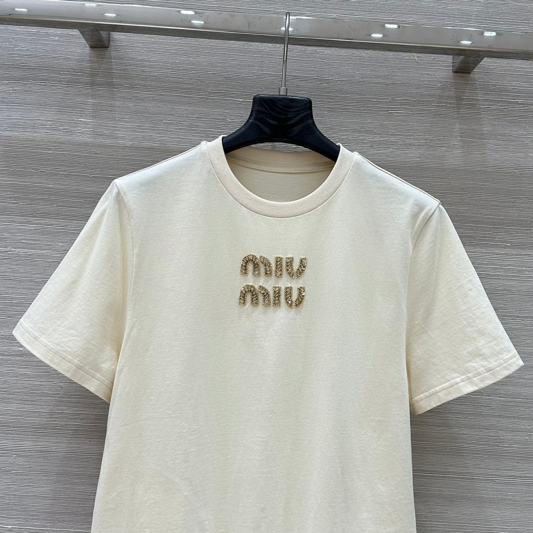 Miu Miu 25 beaded sequined flower short-sleeved T-shirt White Cotton 210497