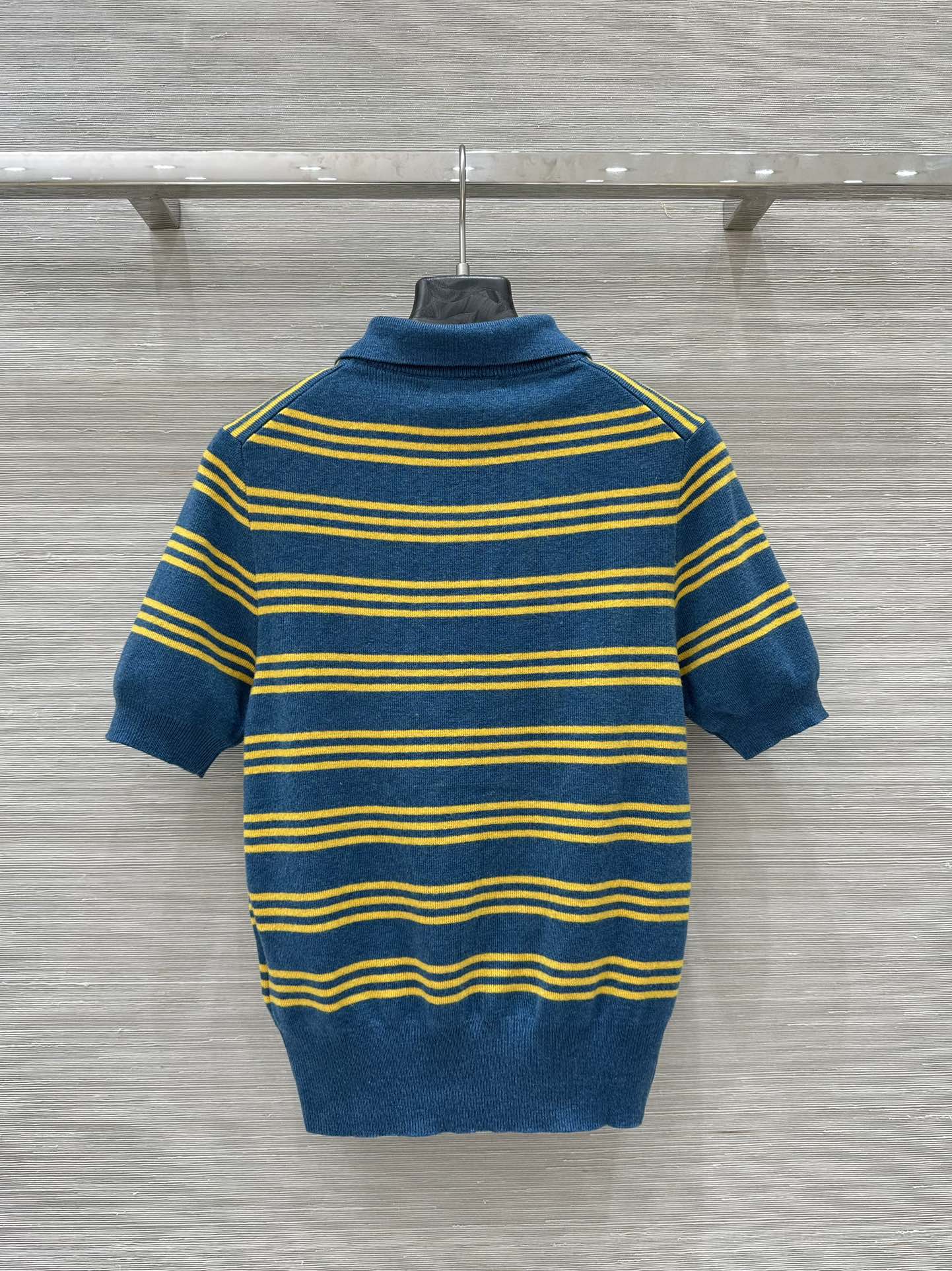 Miu Miu 25 Striped Polo Top Dark Blue Yellow Wool