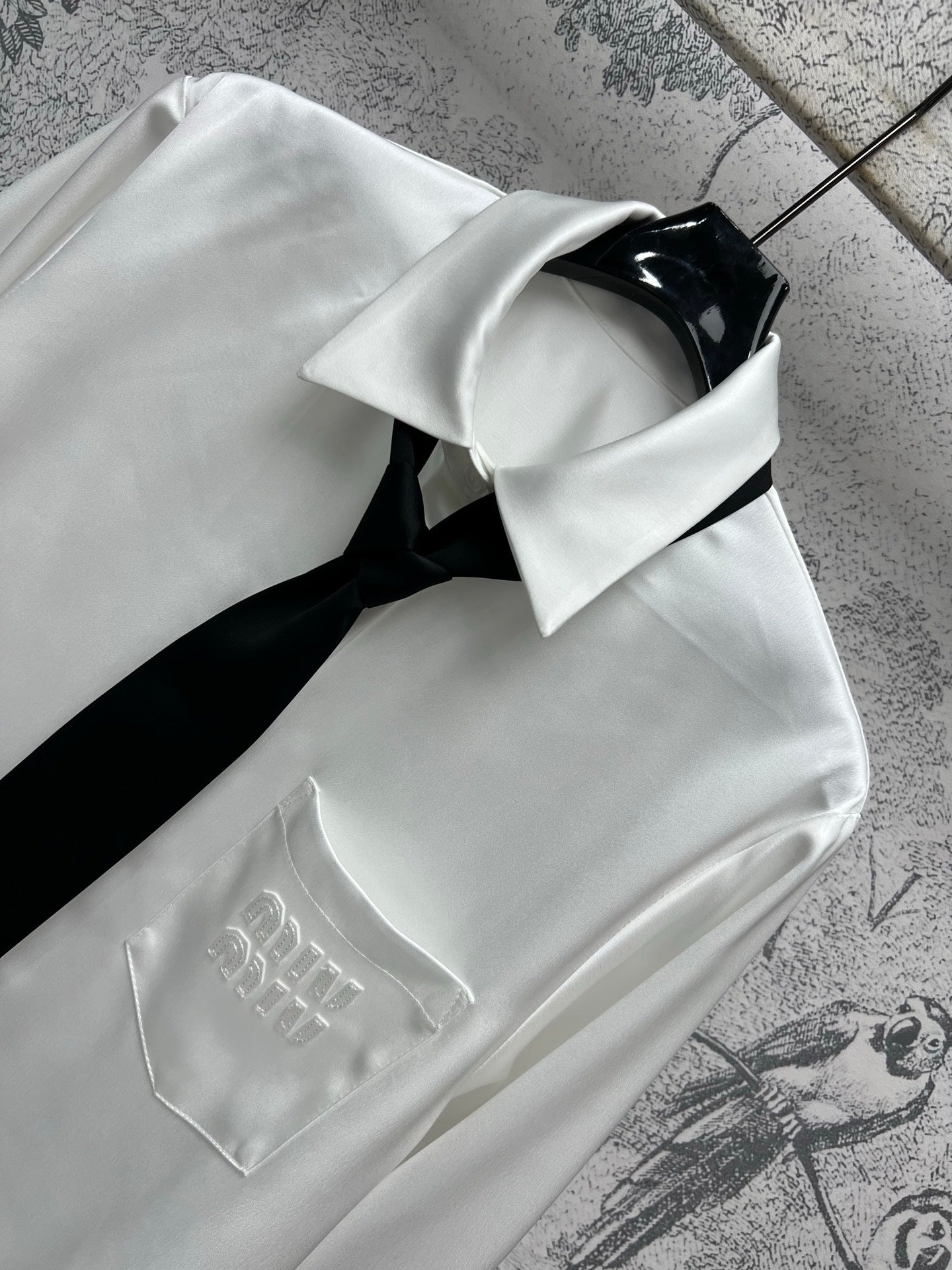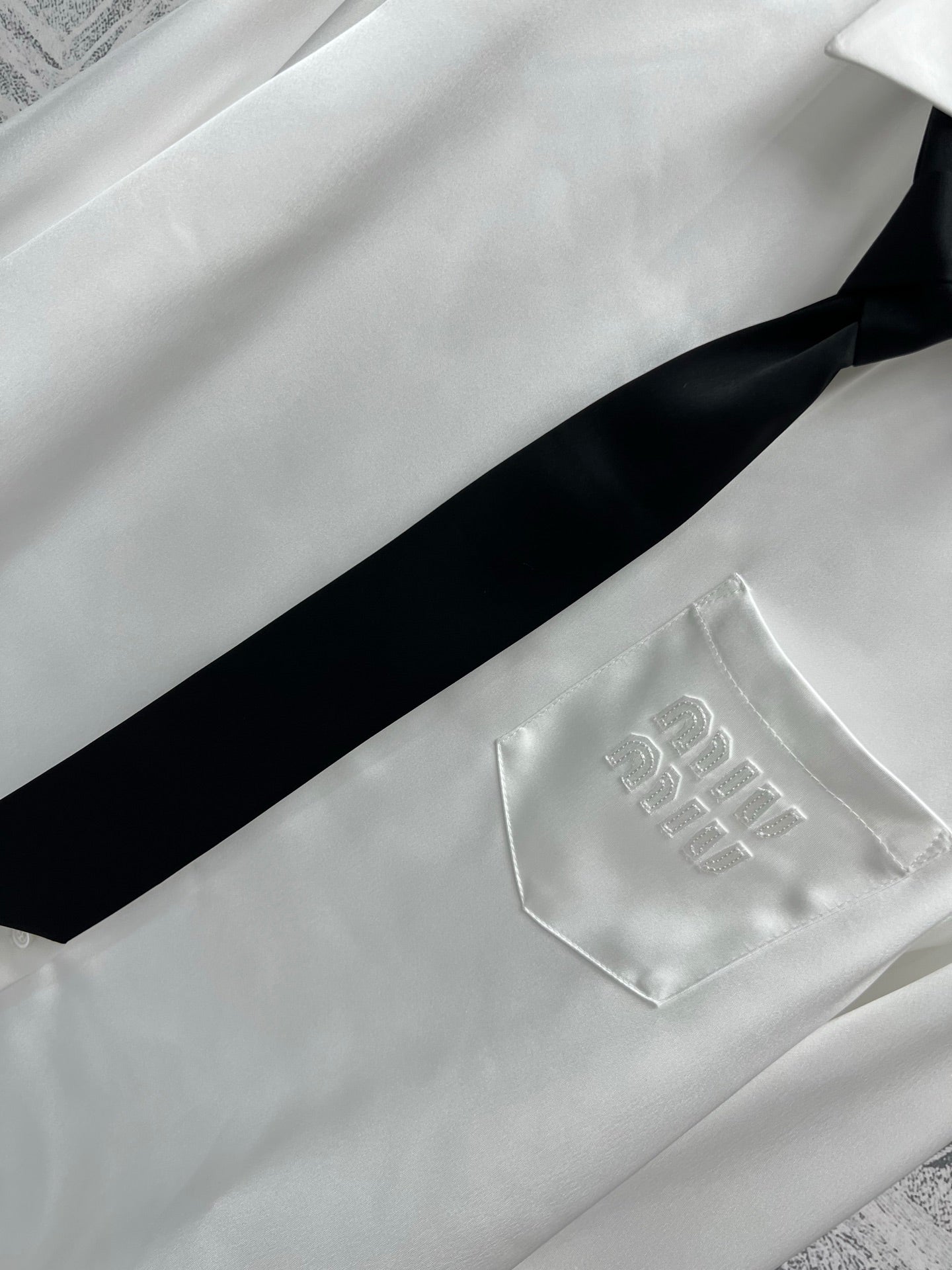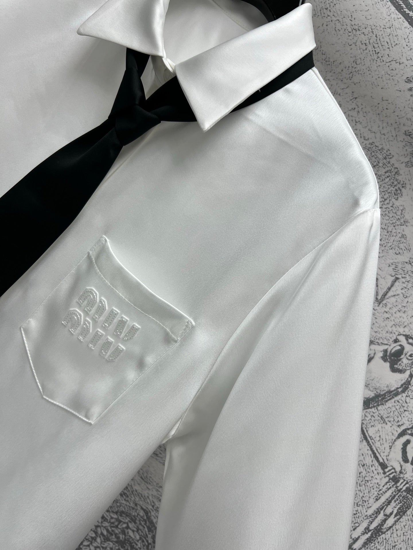 Miu Miu 25 Bow Tie Vest Shirt White Cotton