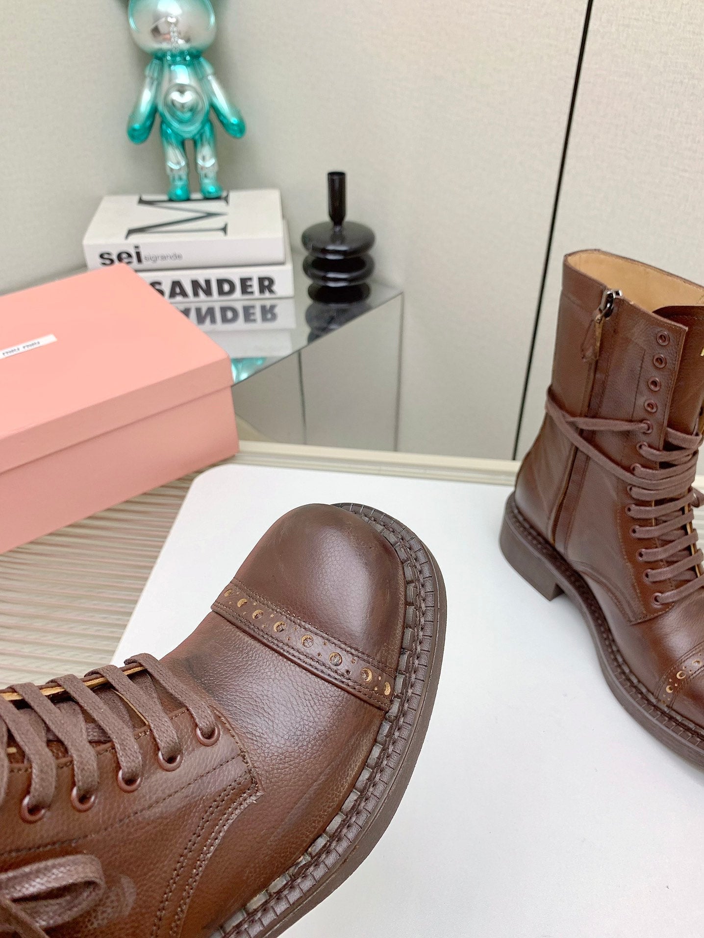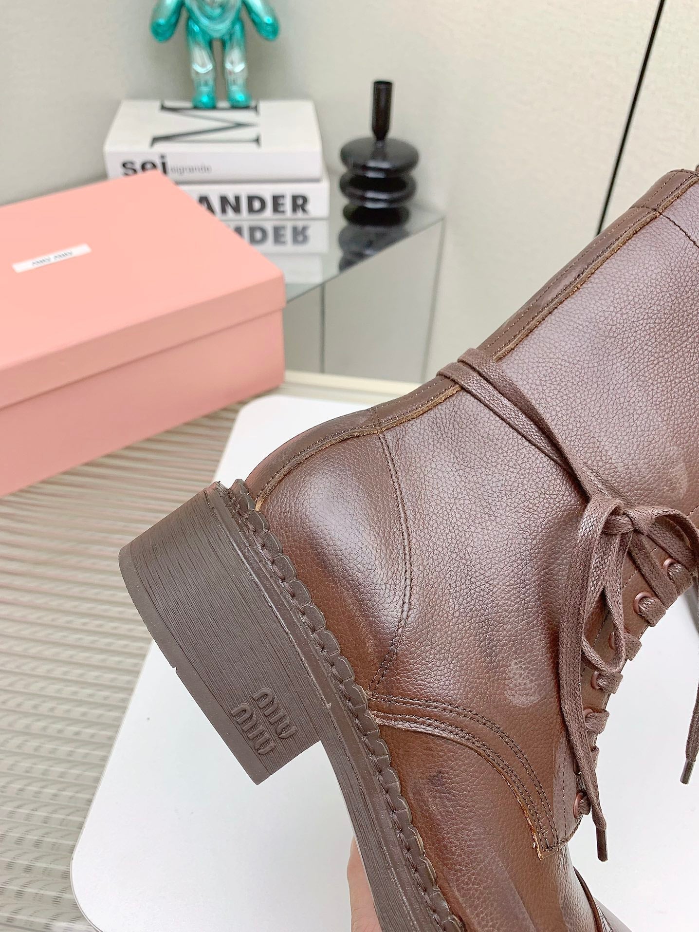 Miu Lace-Up Boots Vintage Brown Waxed Calfskin