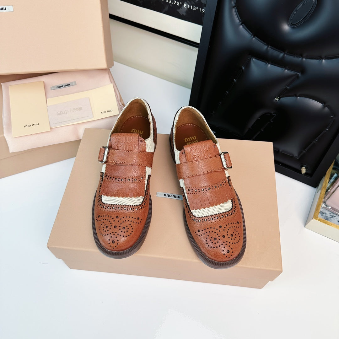 Miu Loafers T-Strap Tabacco Color Cowhide