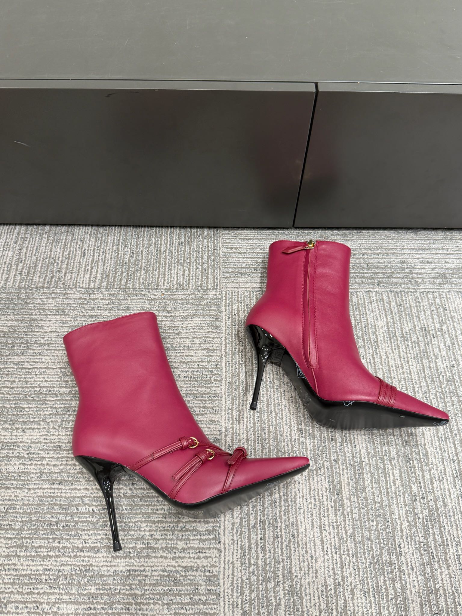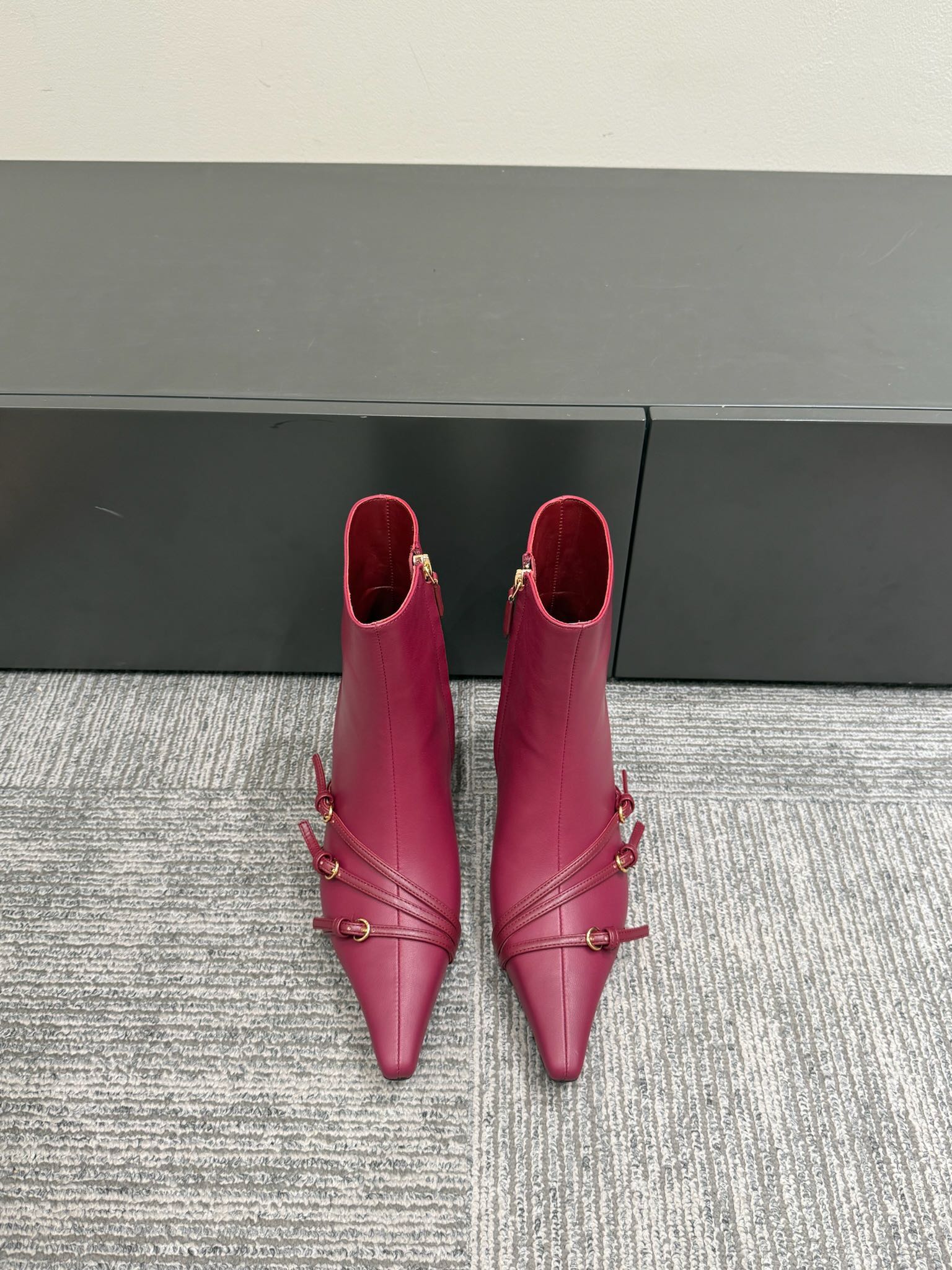 Miu 40 short boots deep magenta or berry cowhide 417983