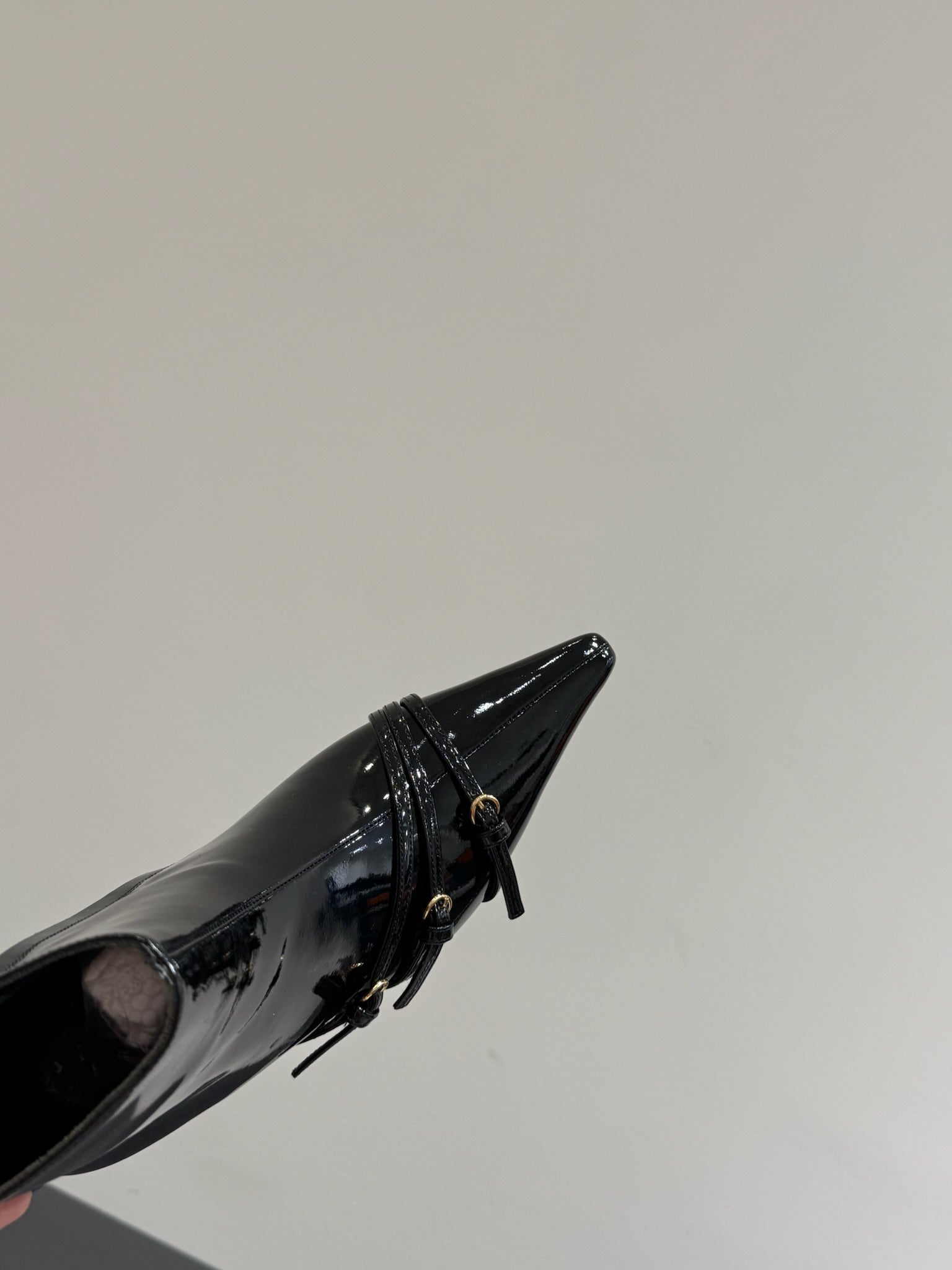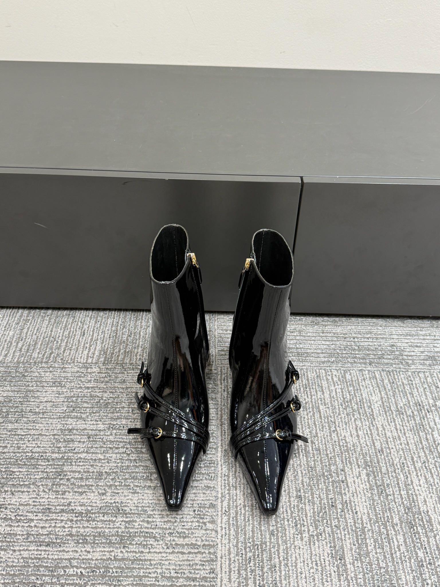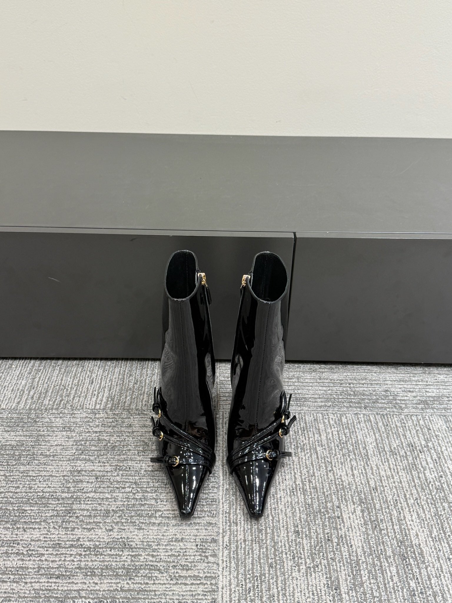 Miu 90 short boots black patent leather 417986