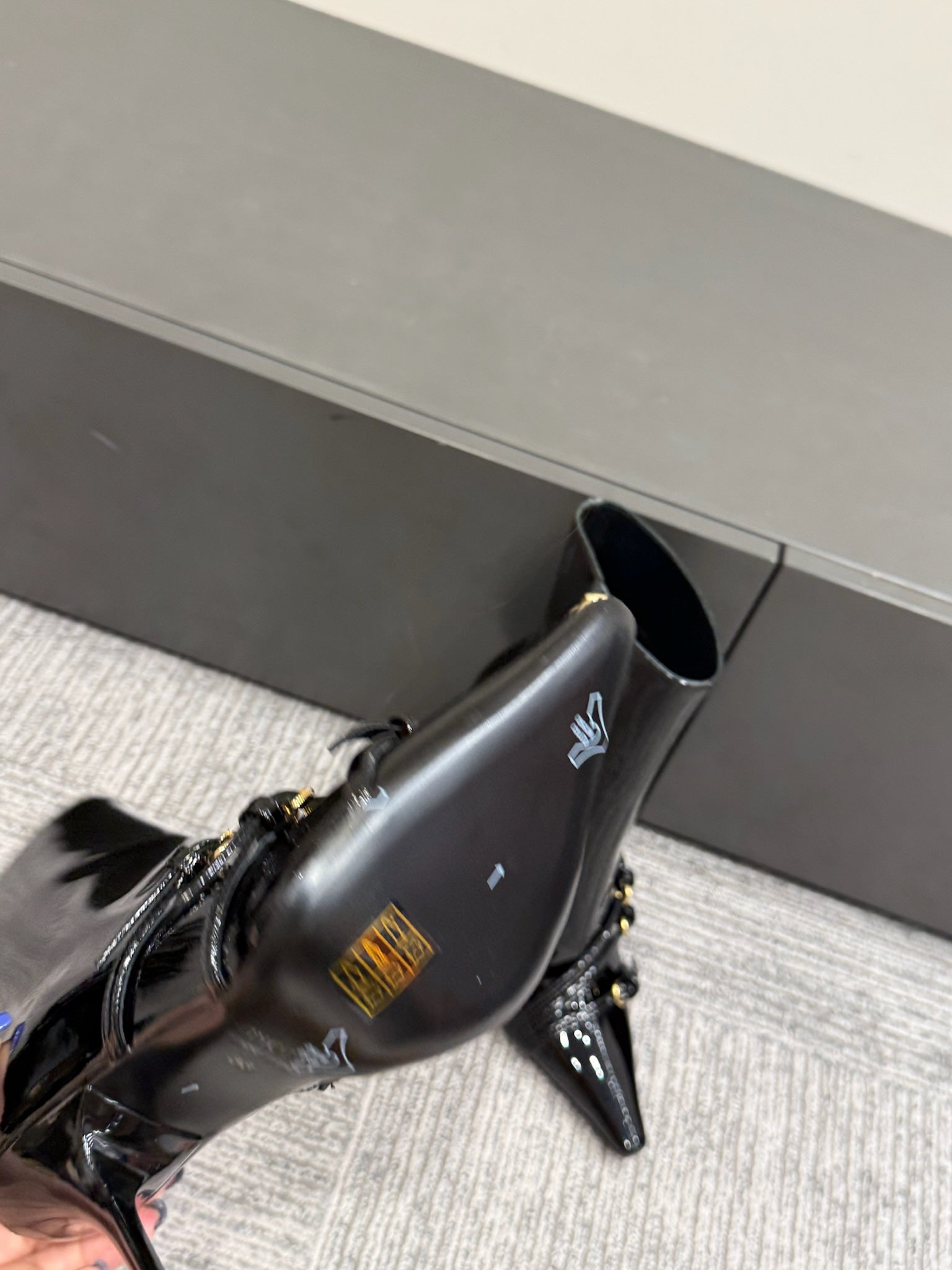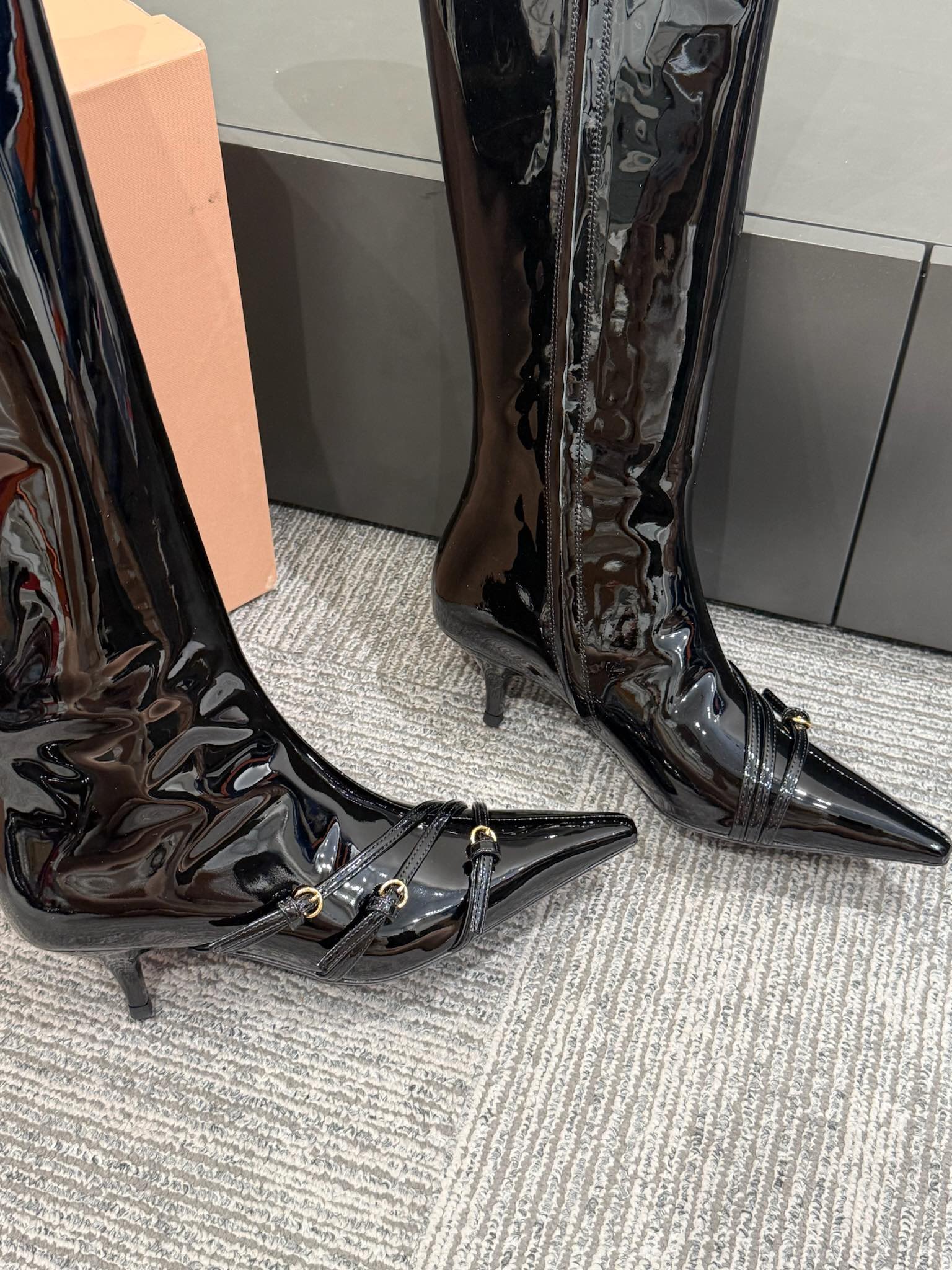 Miu 90 knee high boots black patent leather