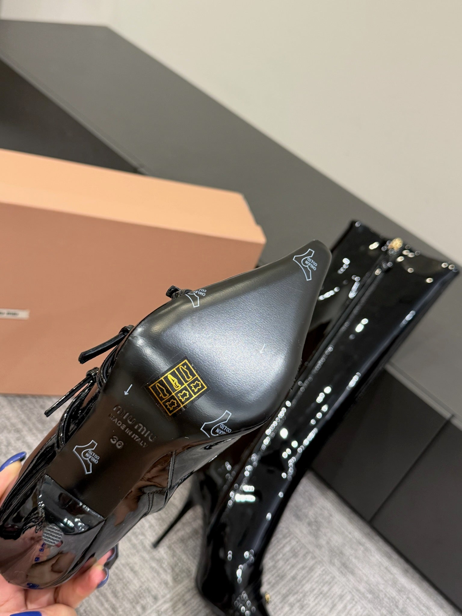 Miu 40 knee high boots black patent leather