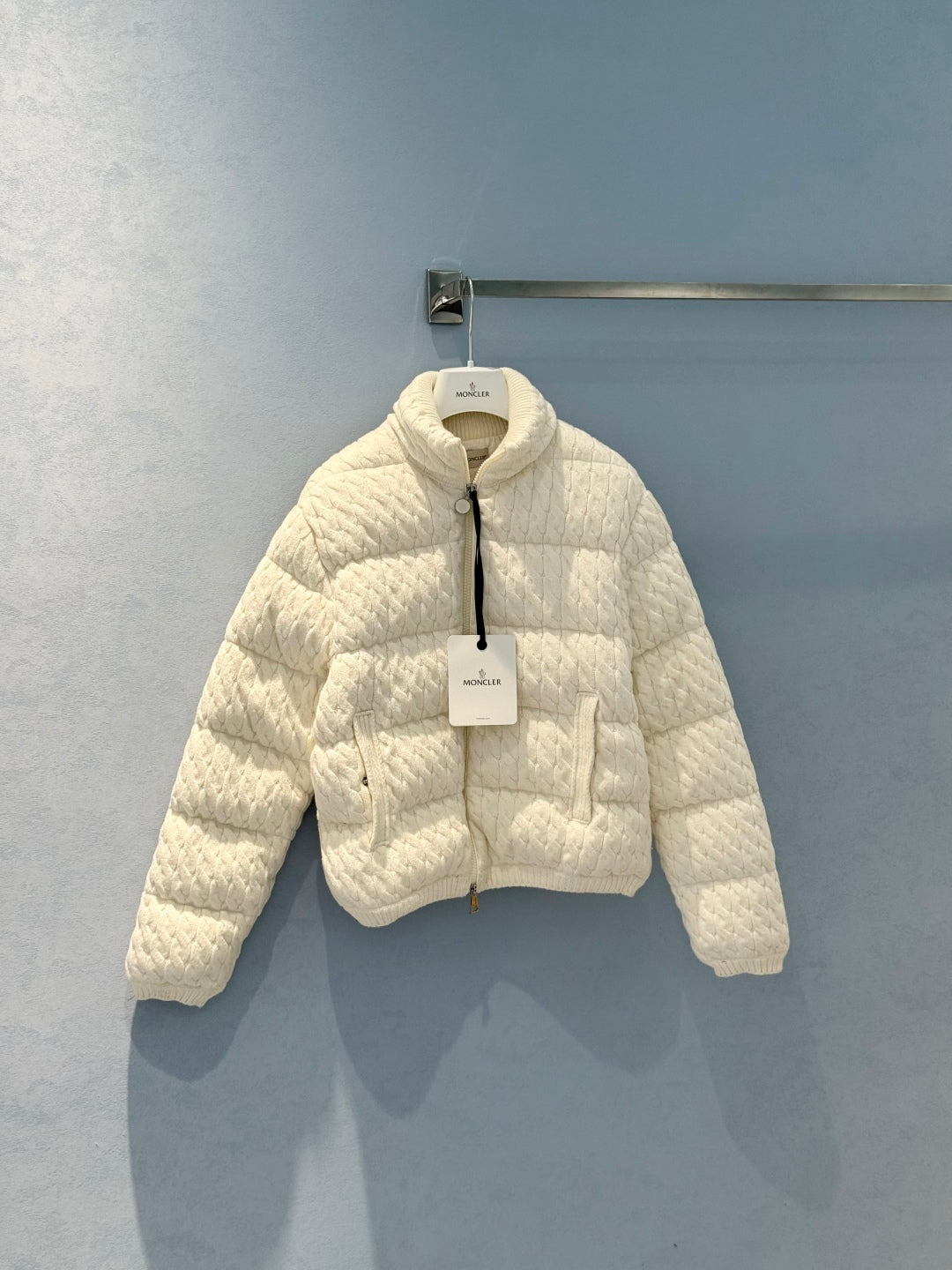 MC 2025 Quilted Knit-panel Puffer Jacket Sky Blue Polyester Wool 528745