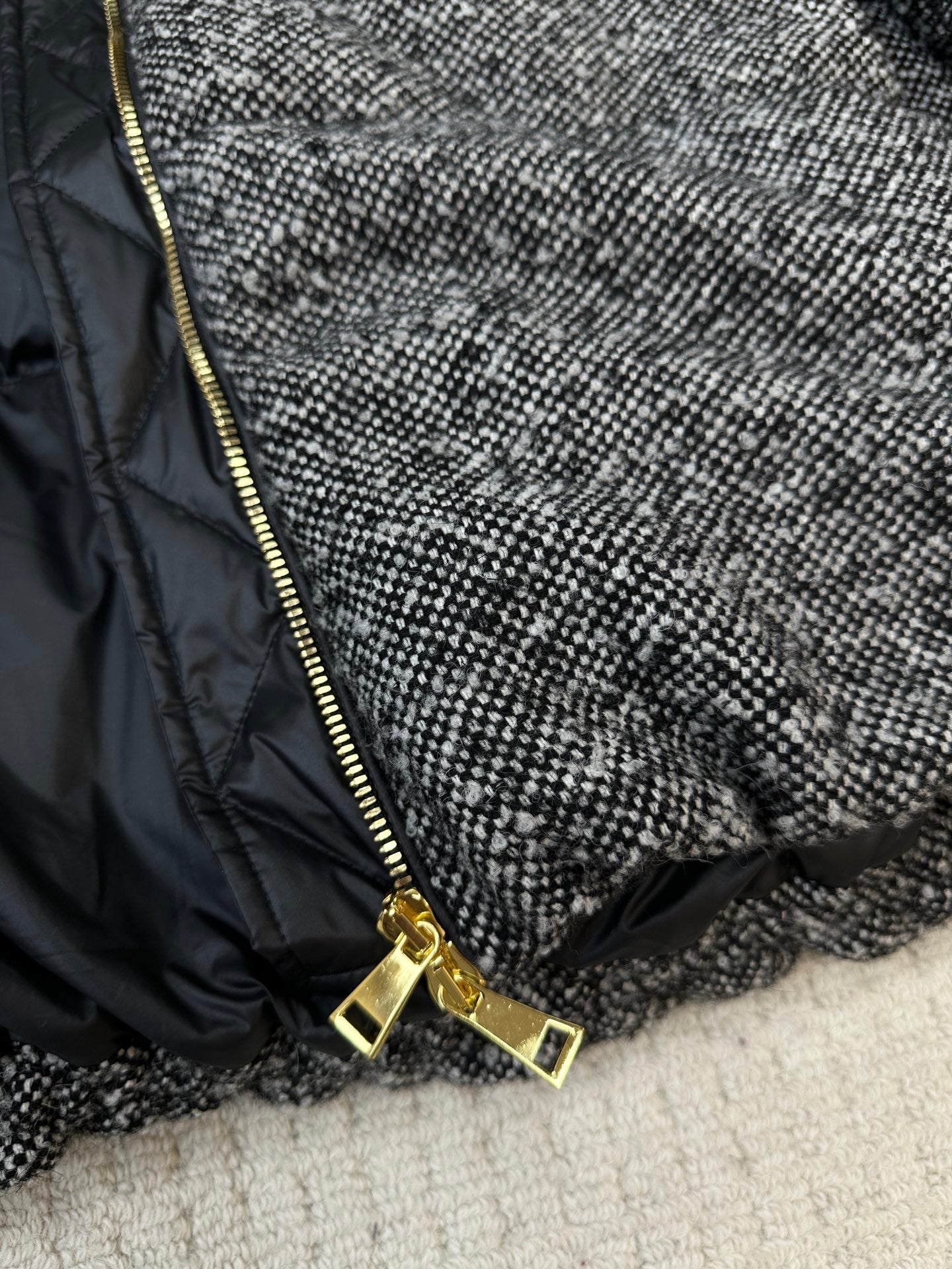 MC 2025 Quilted Knit-panel Puffer Jacket Black Polyester Wool 528747