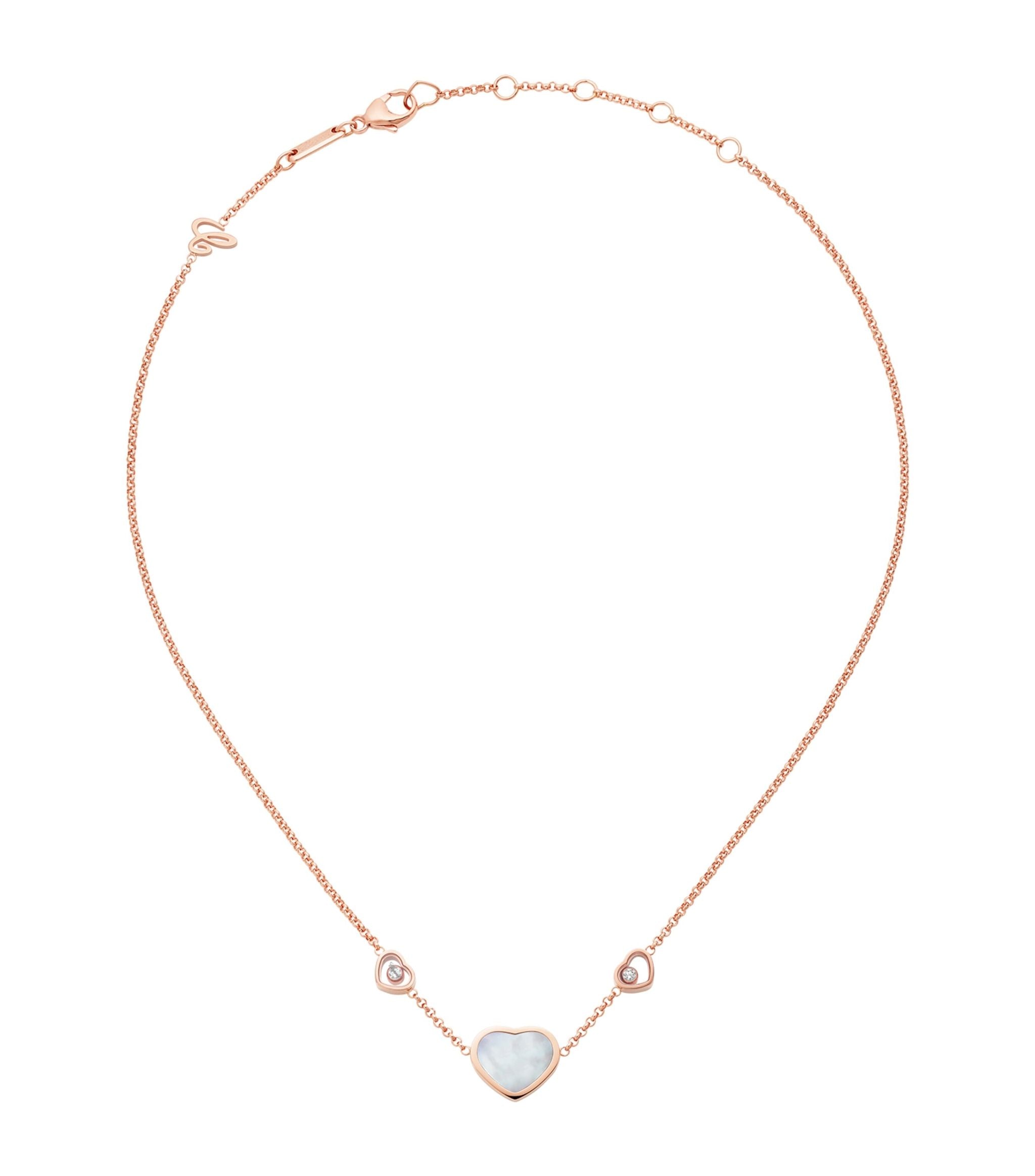 HAPPY HEART WHITE MOP NECKLACE PINK GOLD DIAMOND