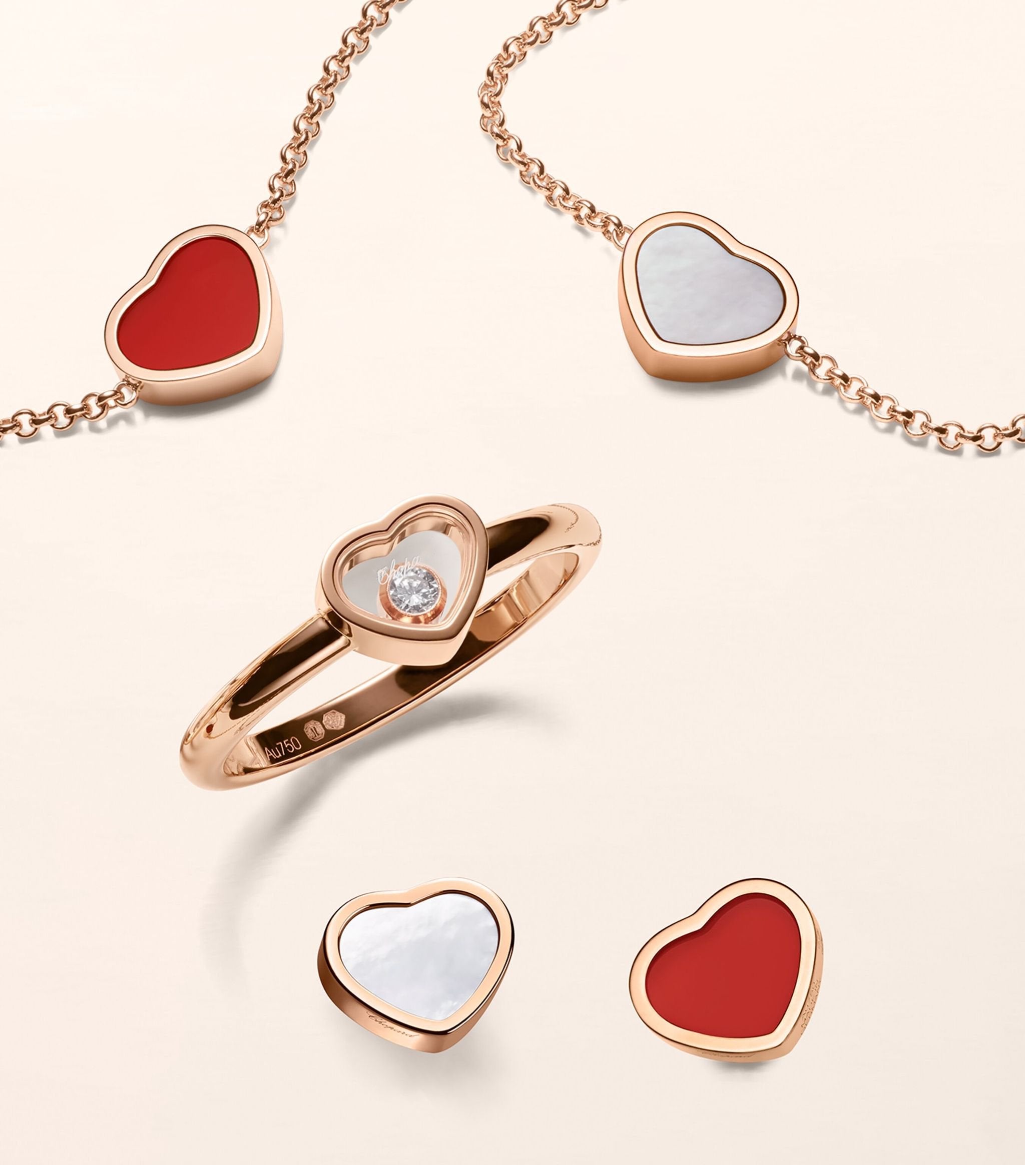 HAPPY HEART CARNELIAN NECKLACE PINK GOLD DIAMOND