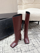 Alaia 2025 Square Toe High Heeled Boot Burgundy Calfskin 558670