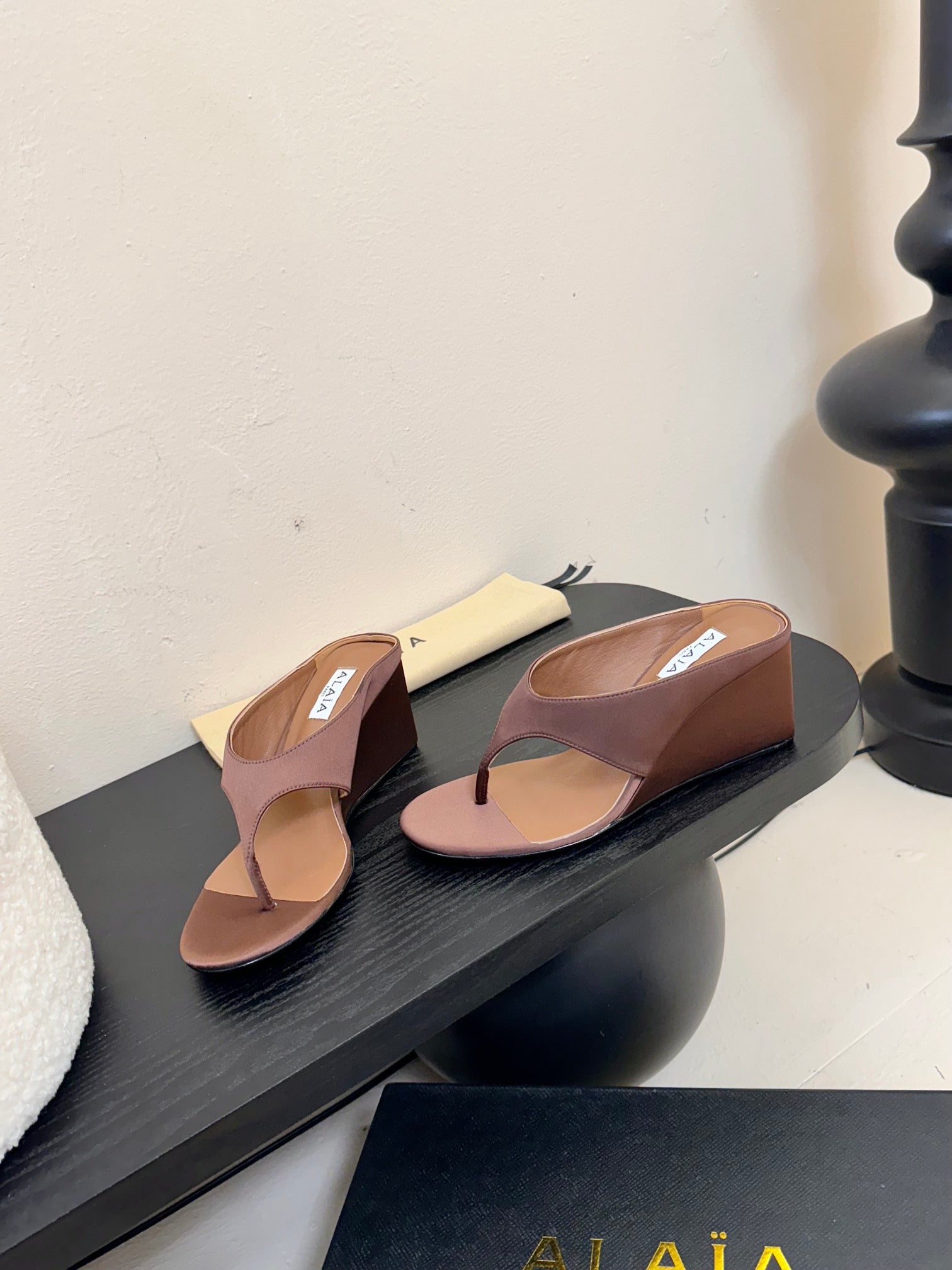 Alaia 25 Cube Thong Mules Brown Satin Sheepskin 297040