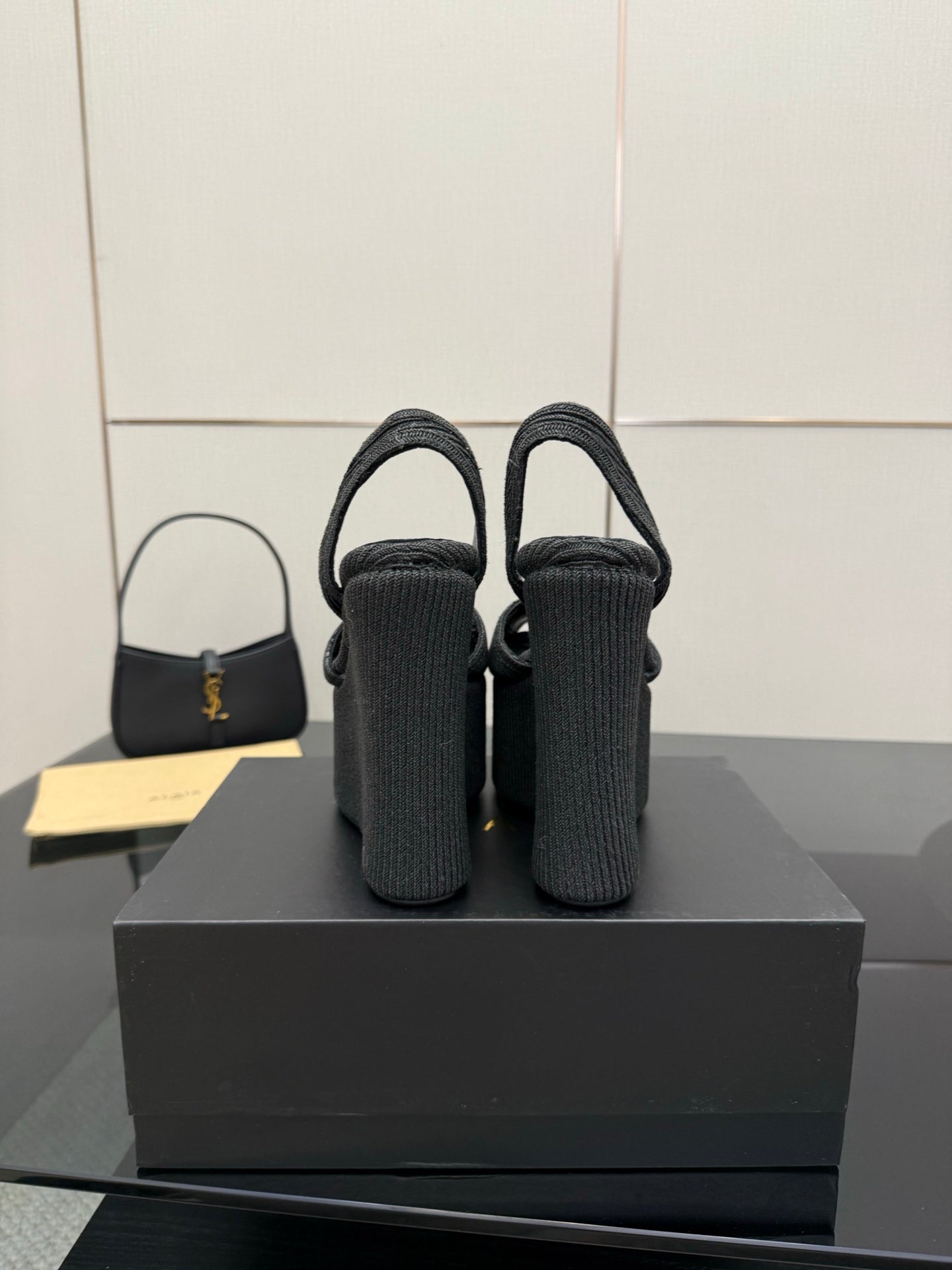 ALAIA platform sandal black sheepskin 389631