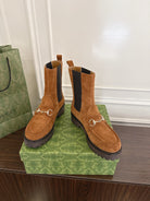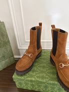 Gucci Horsebit Ankle Boots Brown Black Suede Sheepskin 490529