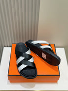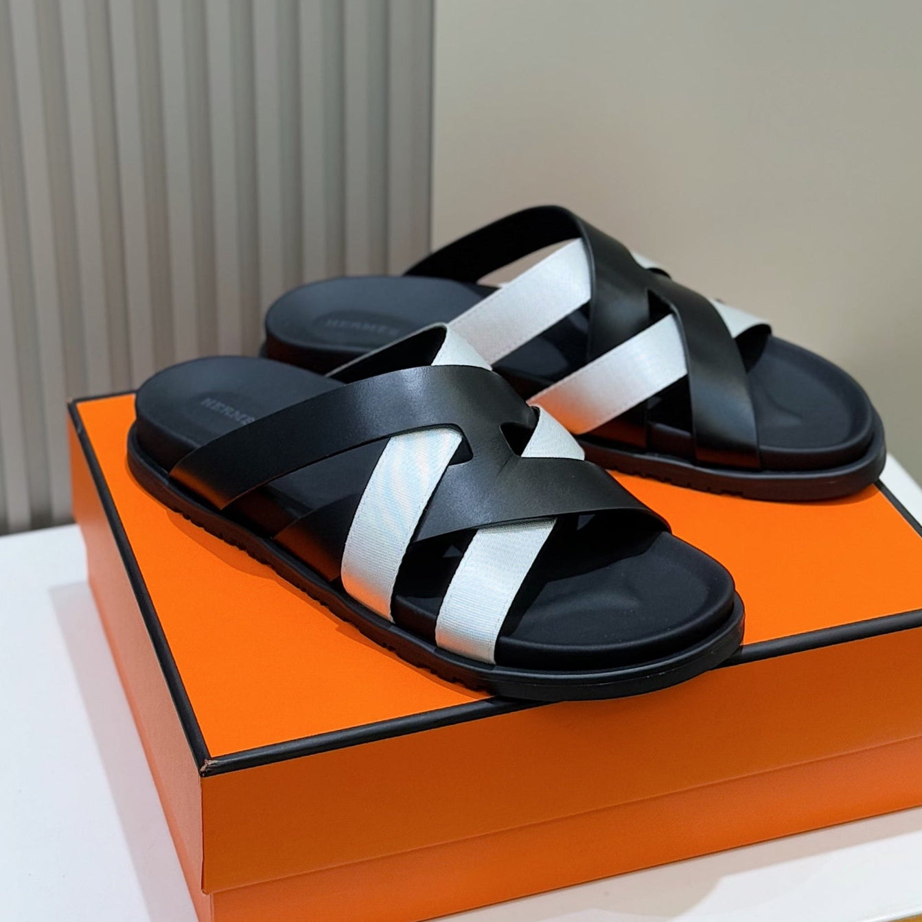 HM Men's Kazimir Slide Black Silver Calfskin 562771