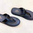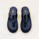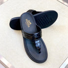 HM Men's Thong Sandals Black Rubber Sheepskin 561667