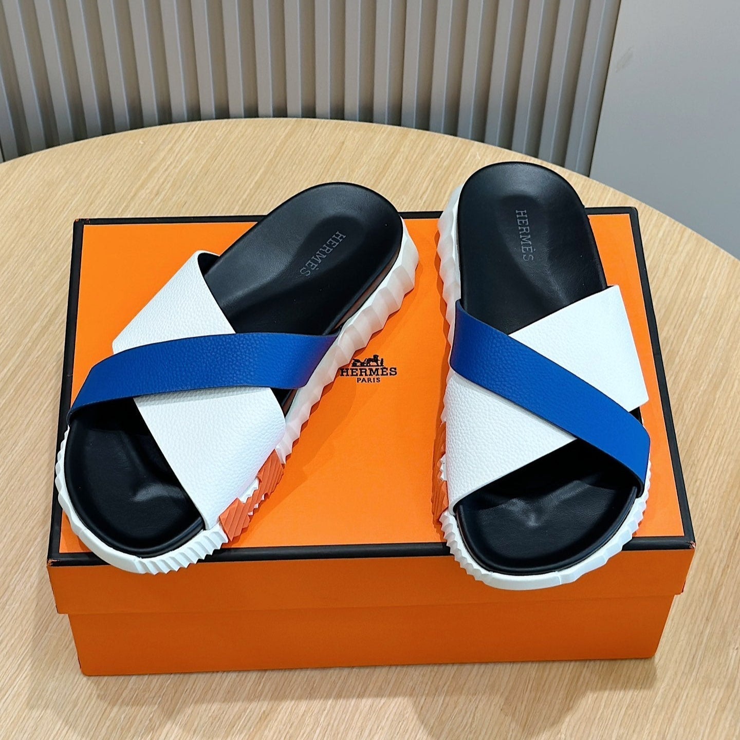 HM Men's Kazimir Slide Blue White Calfskin 562777